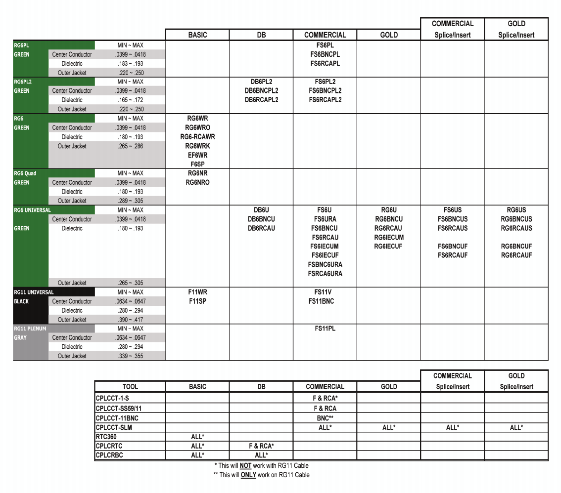 * This will NOT work with RG11 Cable