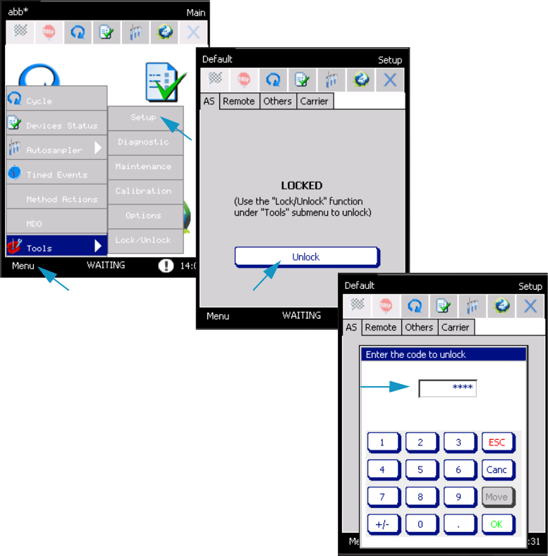 To enable the barcode reader select Menu > Setup > AS. Activate the barcode reader by