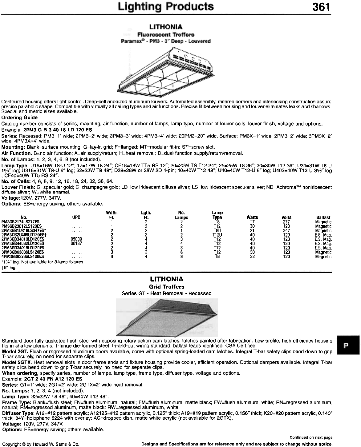 Series: Recessed: PM3=1' wide; 2PM3=2' wide; 3PM3=3' wide; 4PM3=4' wide; 20PM3=20" wide. Surface: PM3X=1' wide; 2PM3=2' wide; 3PM3X=2'