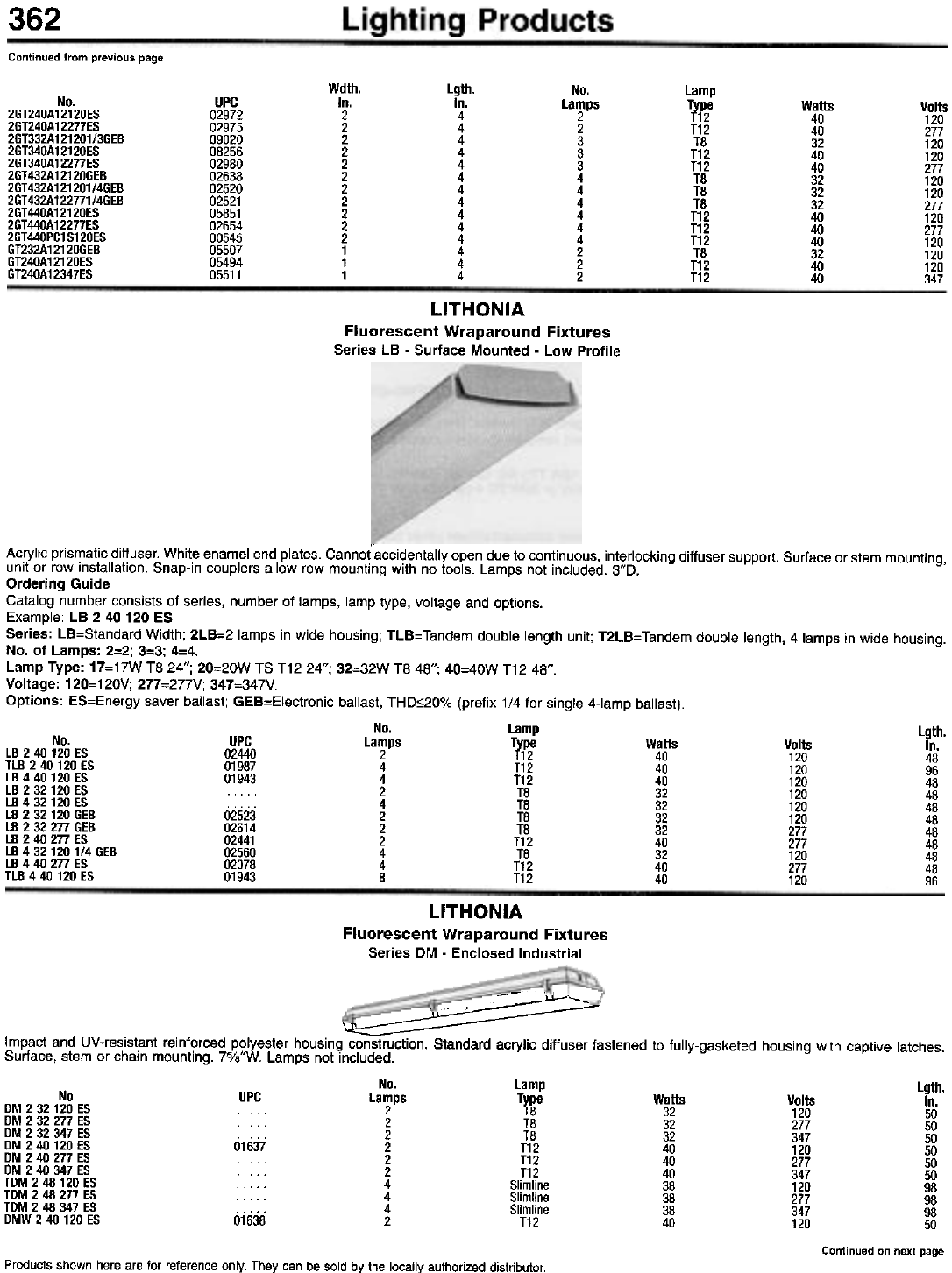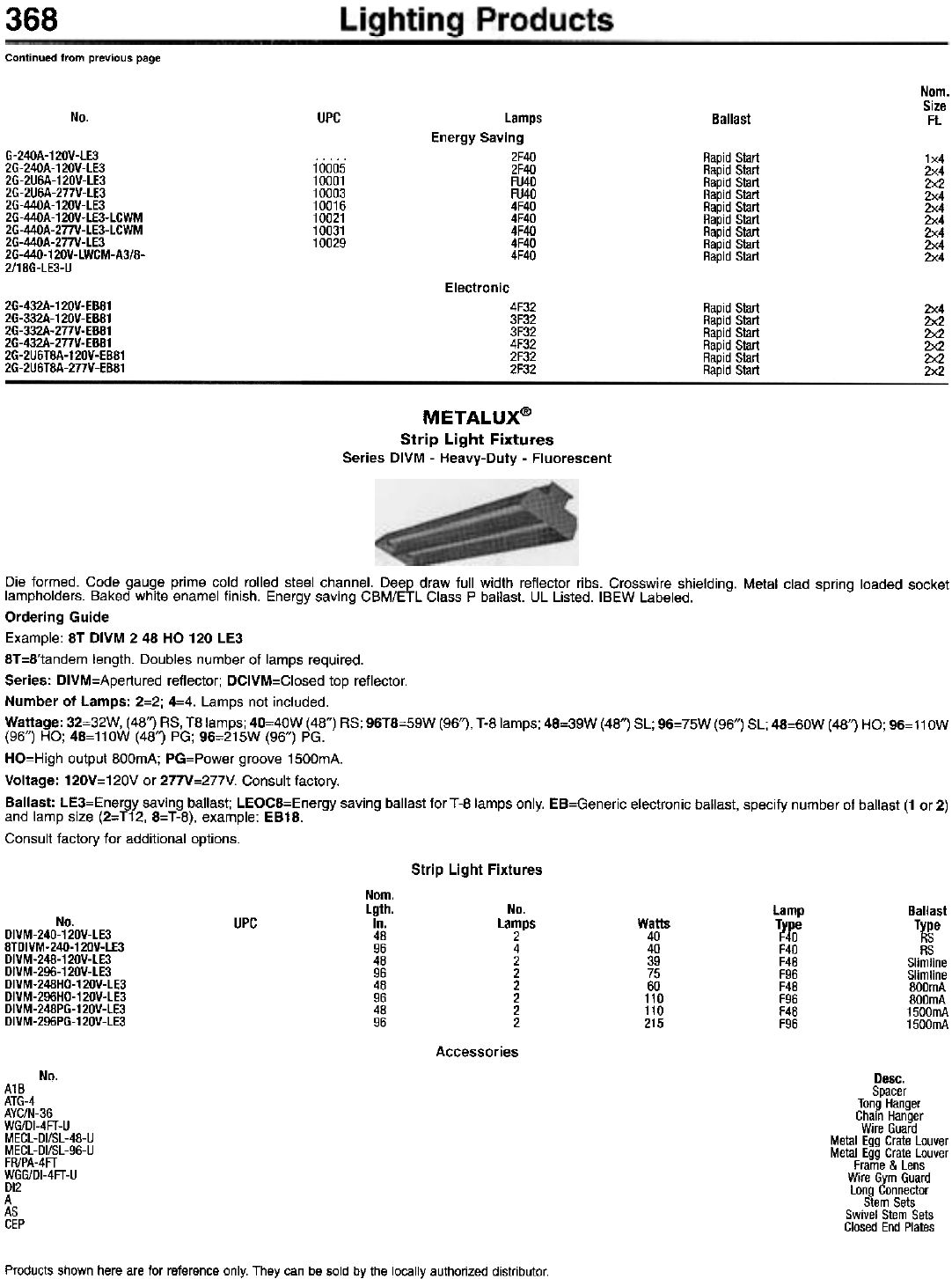 15/8" leg; U316=31W T8-U 6" leg; 32=32W T8 48"; D38=28W or 38W 2D 4-pin; 40=40W T12 48"; U40=40W T12-U 6" leg; U403=40W T12-U 35/8" leg