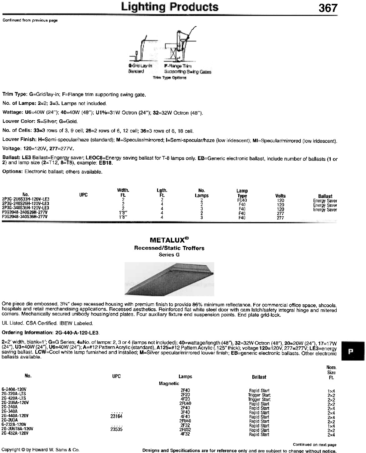 When ordering, specify series, number of lamps, lamp type, frame type, diffuser type, voltage and options.