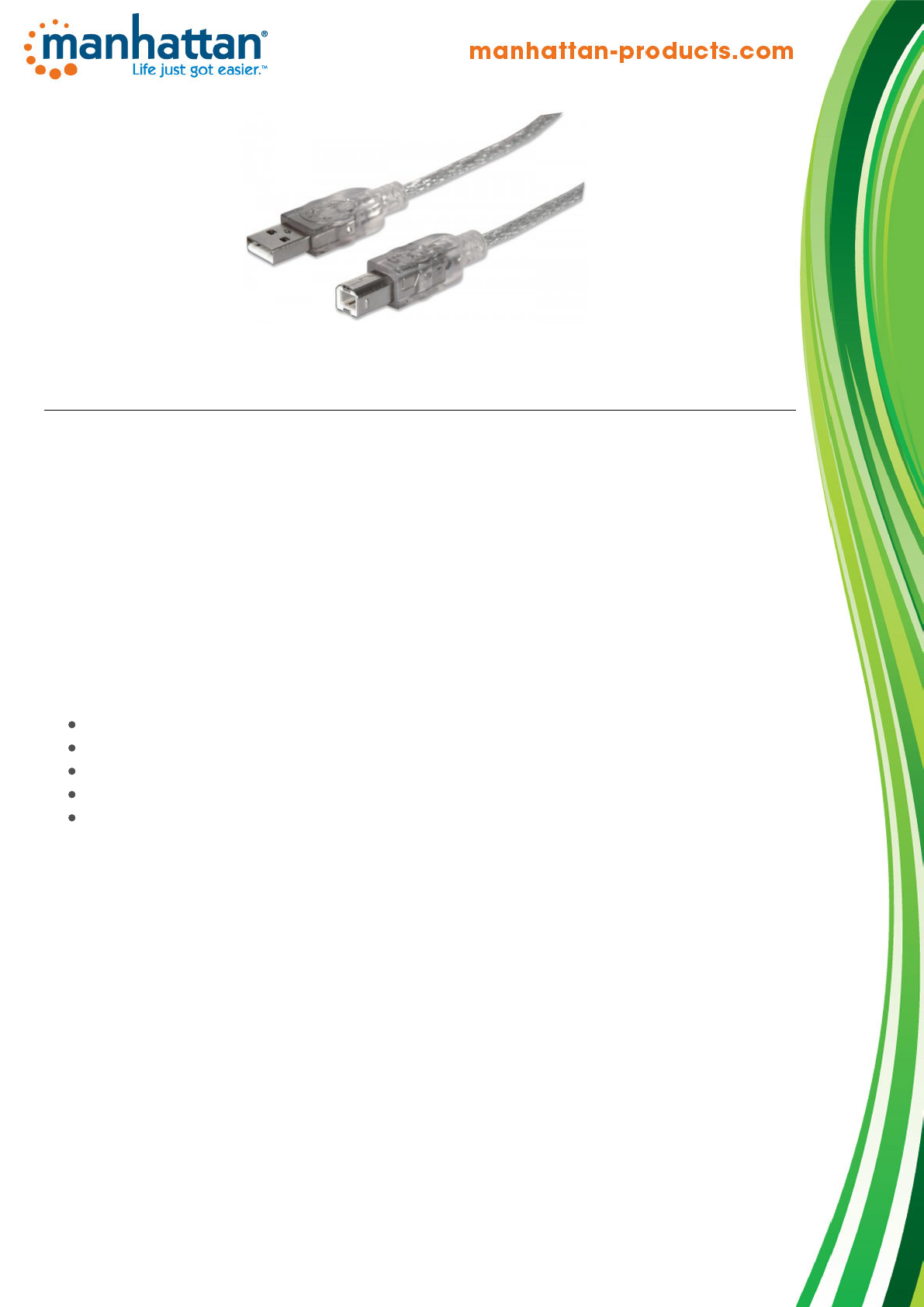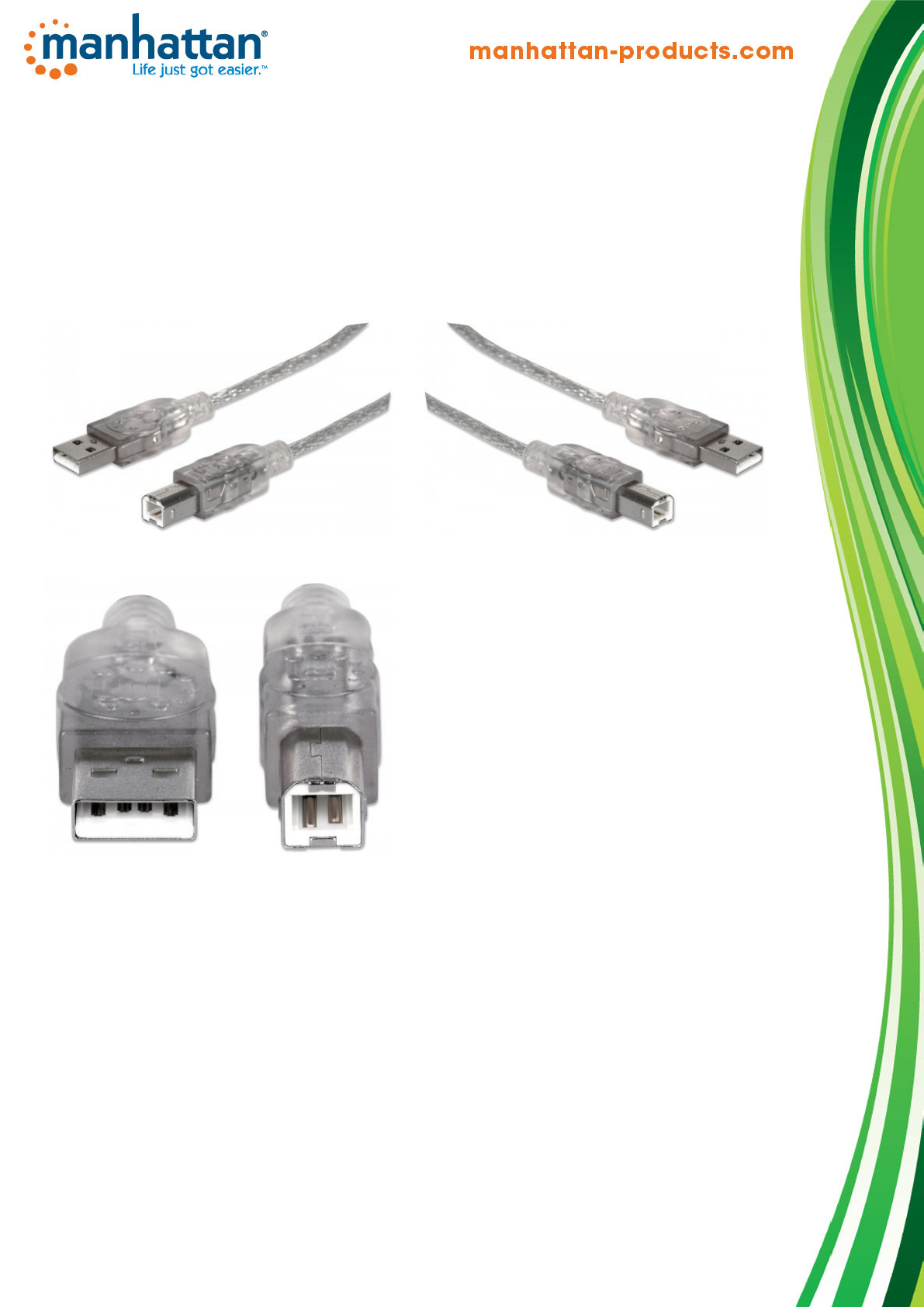 MANHATTAN Hi-Speed USB 2.0 Device Cables easily connect USB peripherals and