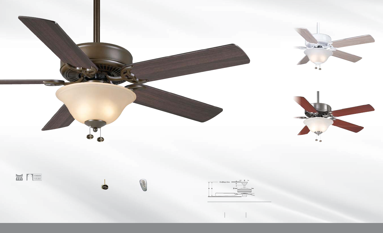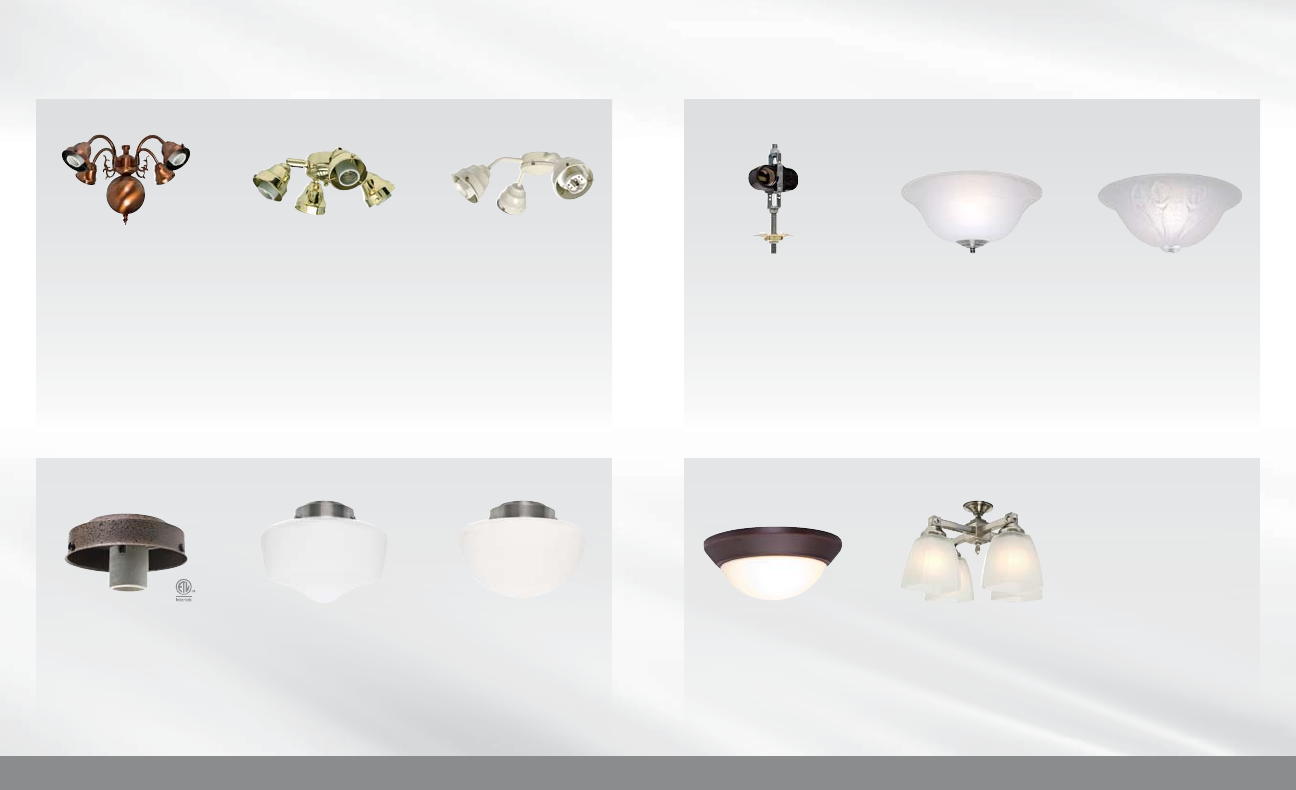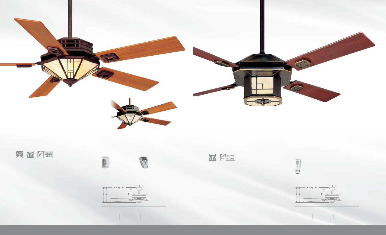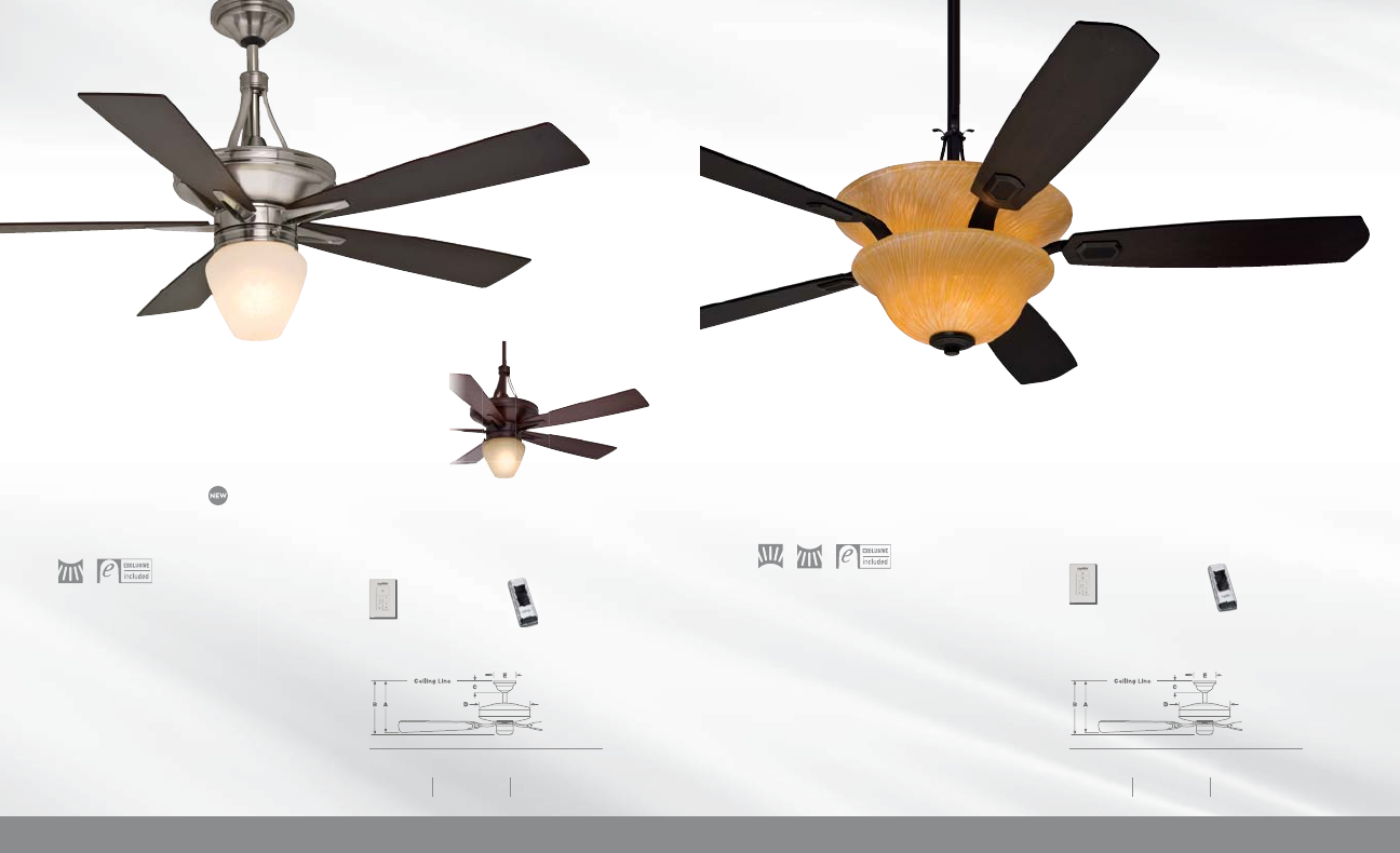 Gallery Edition models include coordinating blades, light fi xture and glass. Fans with the notation "Requires Additional Hanging Support" are packaged with the necessary hardware.