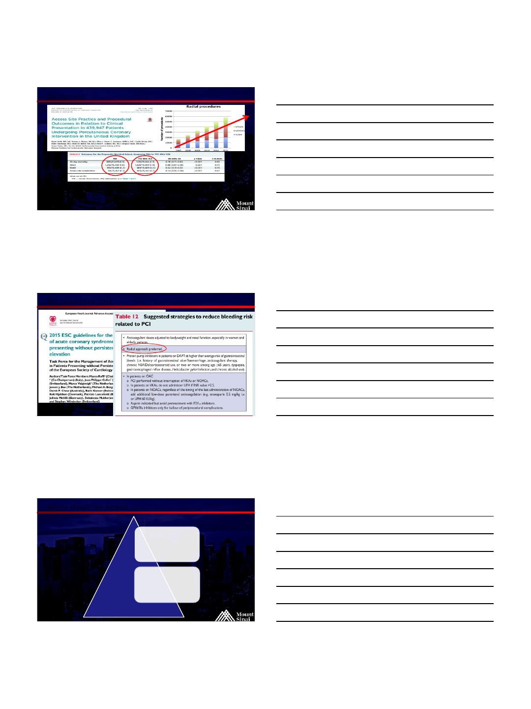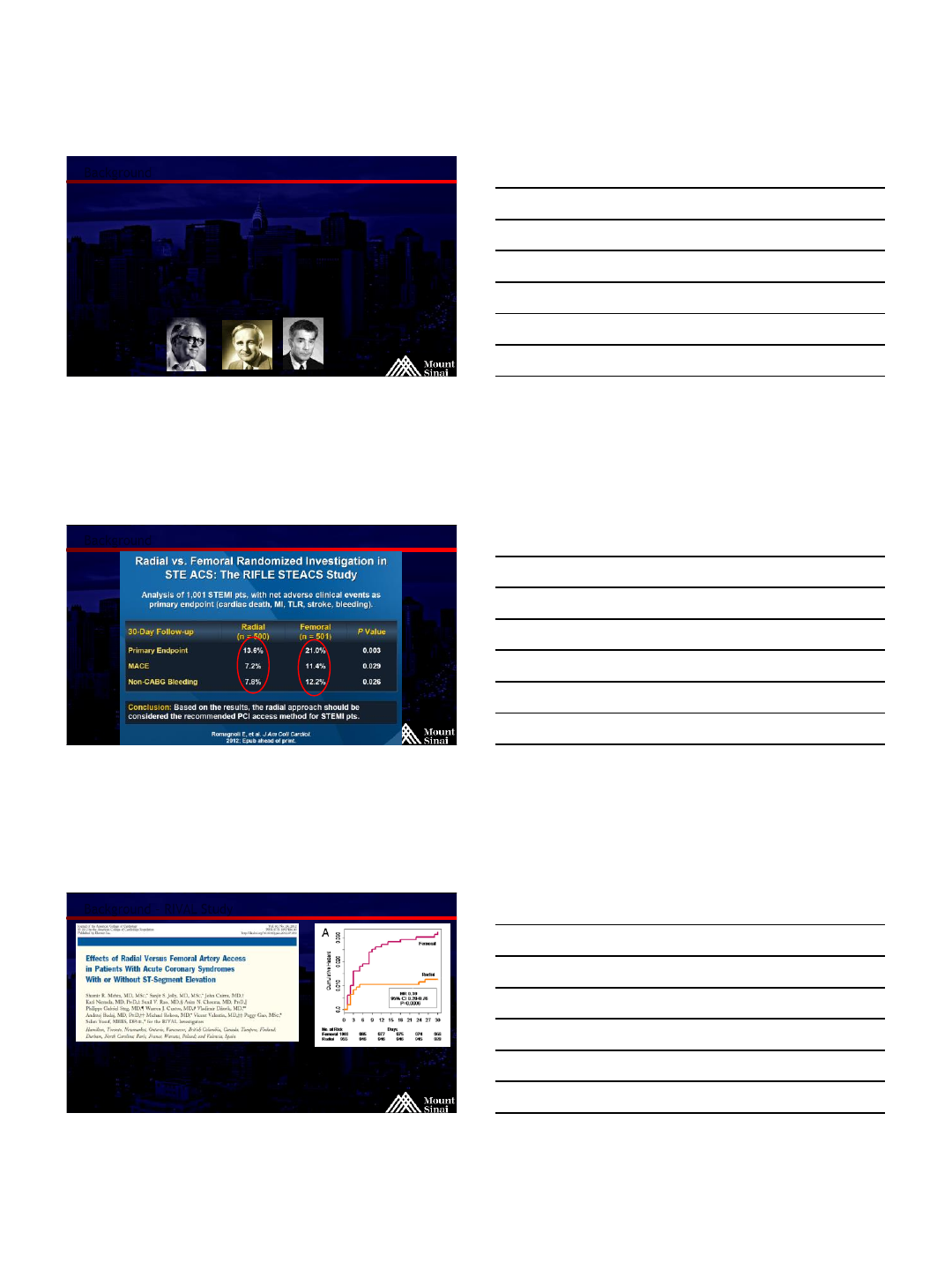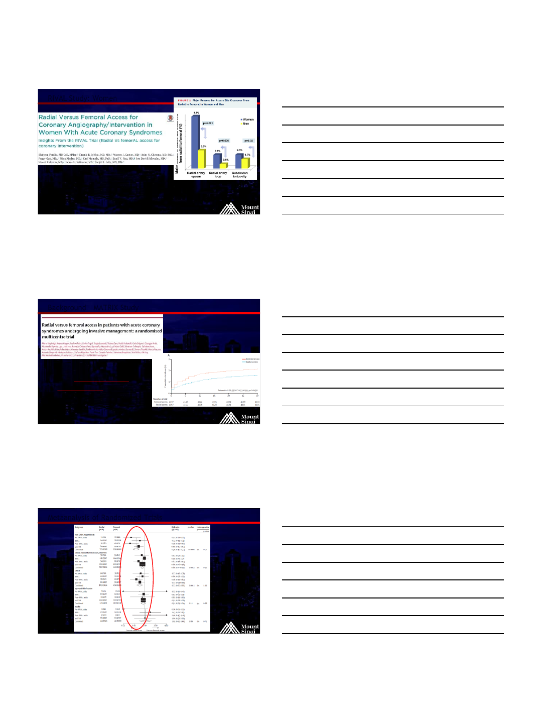 Mehta et al. Effects of Radial Versus Femoral Artery Access in Patients With Acute Coronary Syndromes With or Without ST-Segment Elevation. Journal of the American College of Cardiology. 10/12 2012.