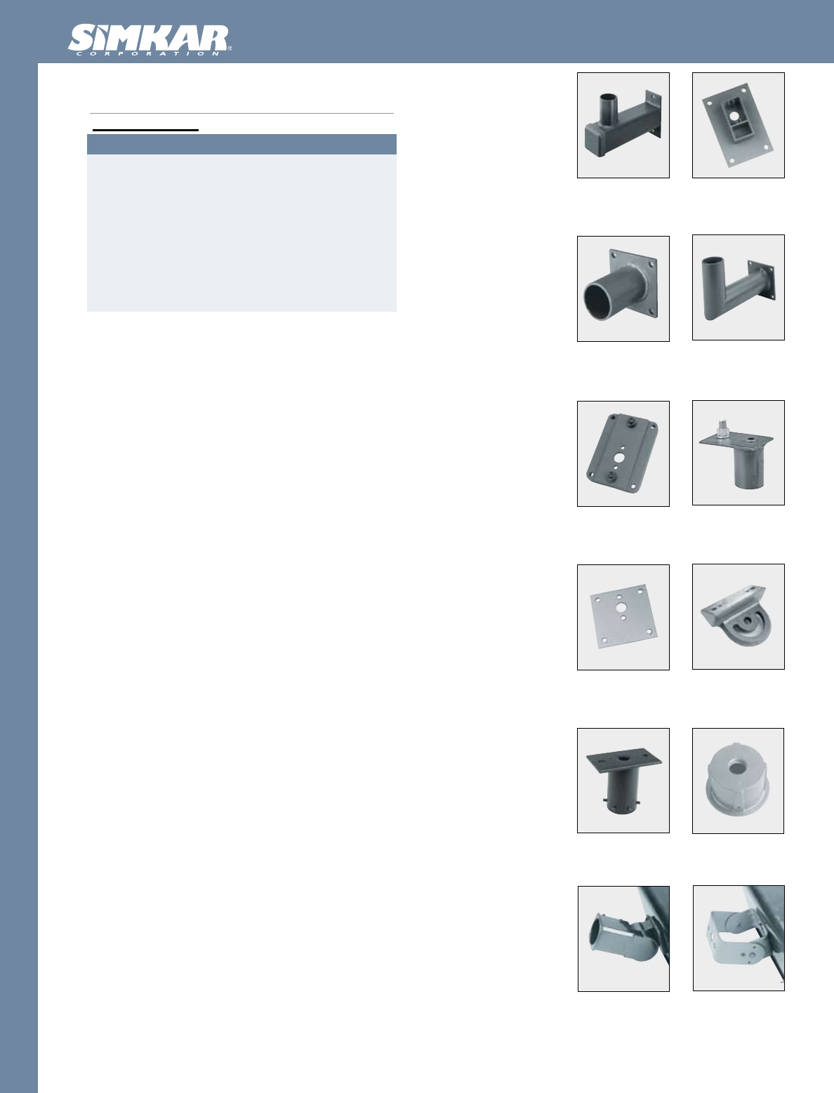 SPB & SSB Series Square Pole Mounting Brackets . . . . . . . . . . . . . . 262