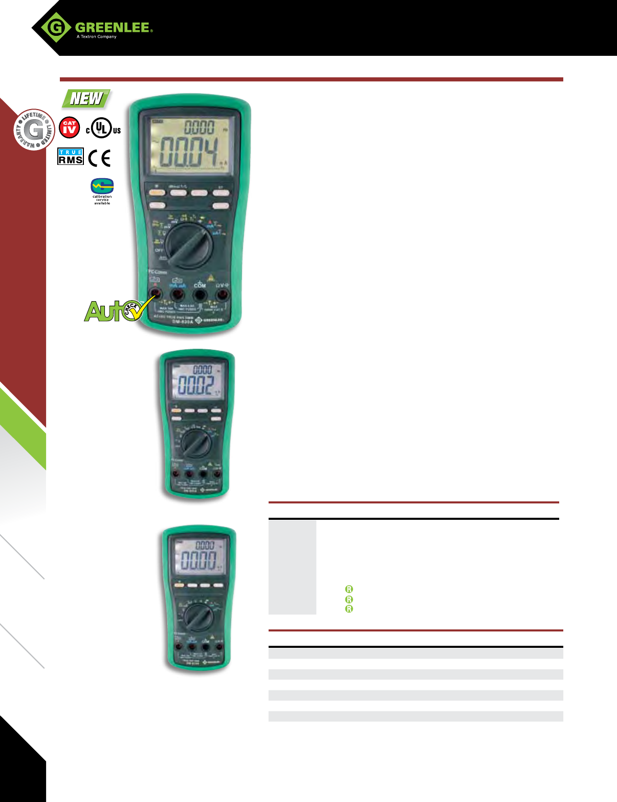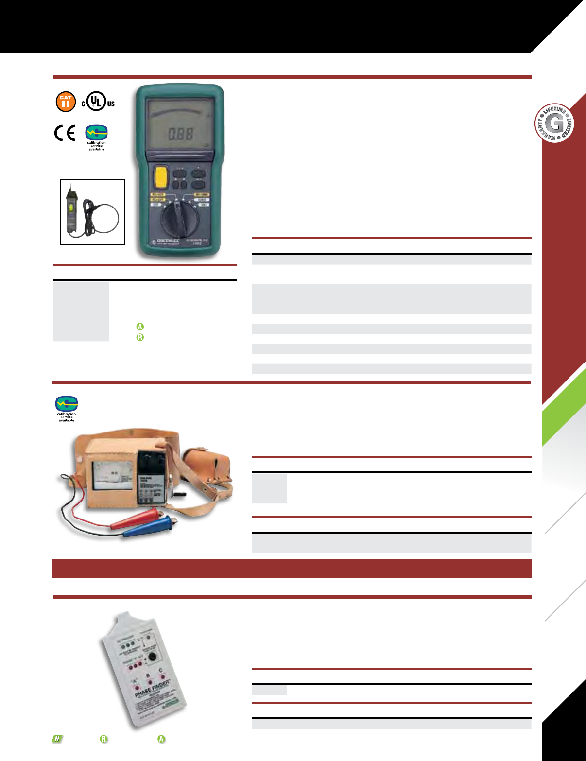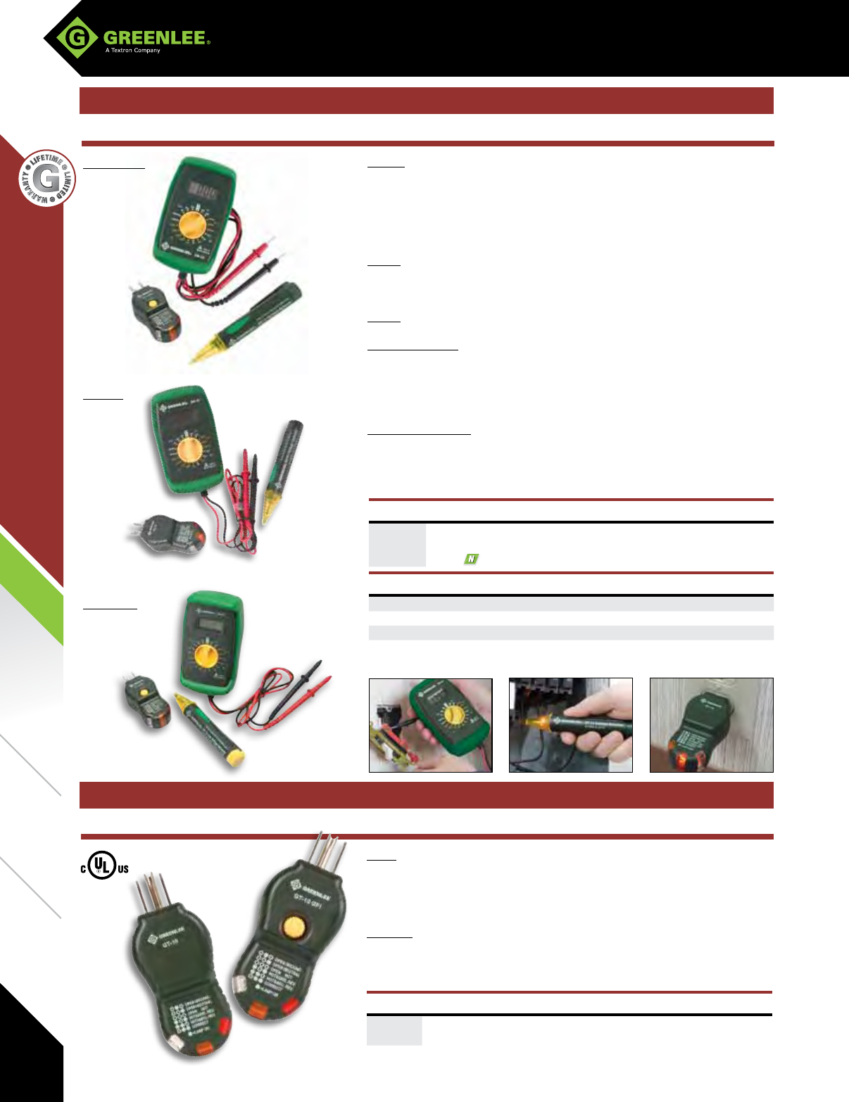 result of ISO procedures or customer quality audit requirements. Greenlee Textron Inc. can provide calibration service for specifically marked hand-held electrical test