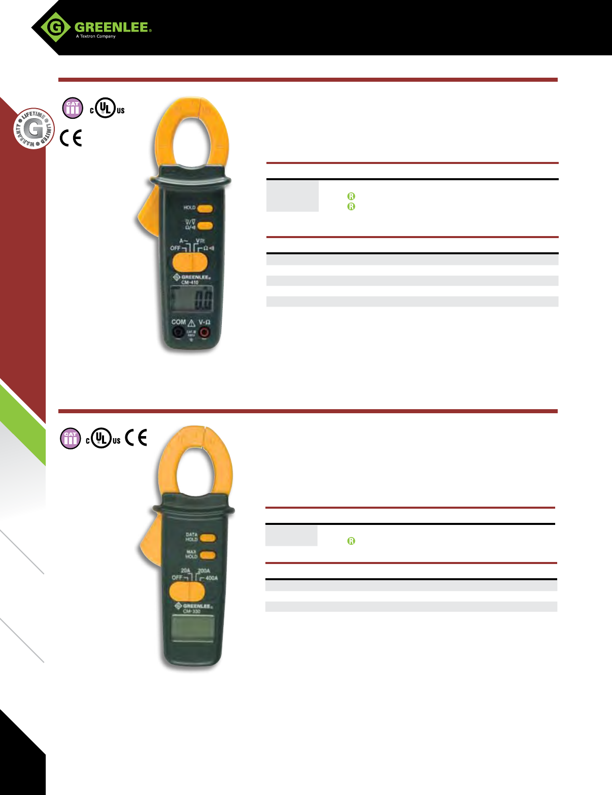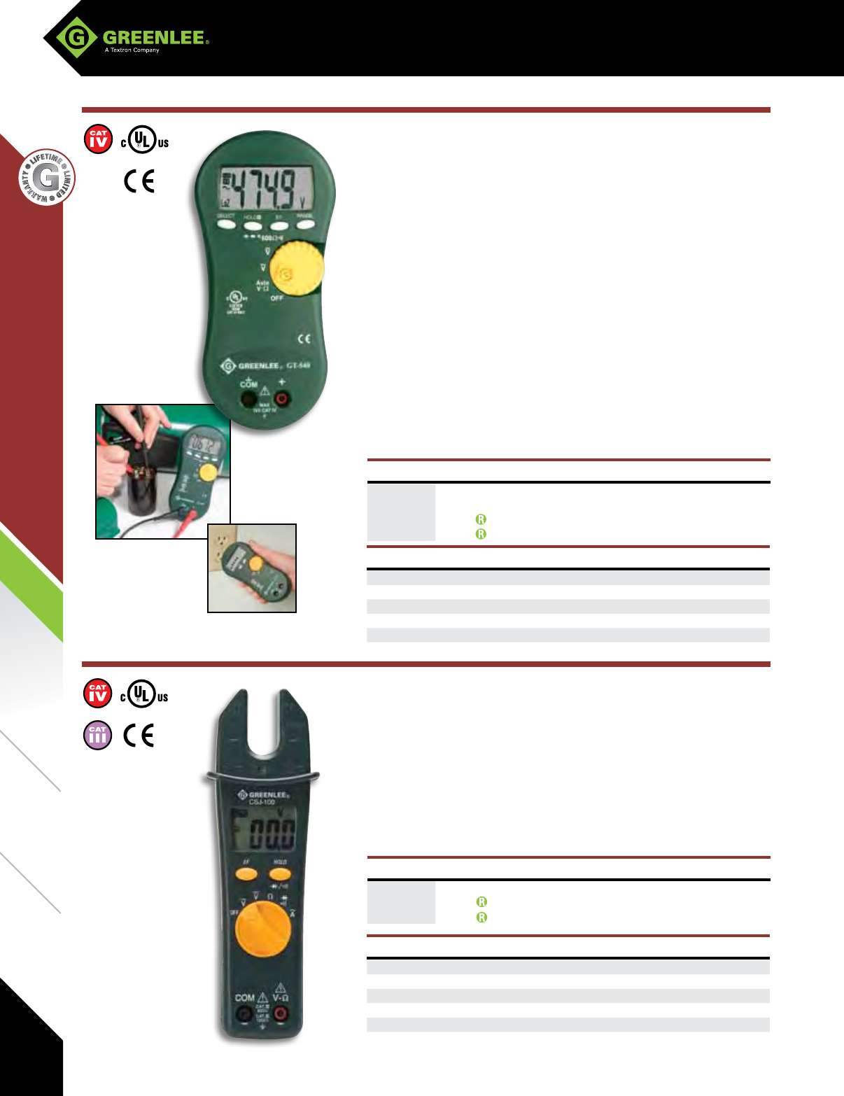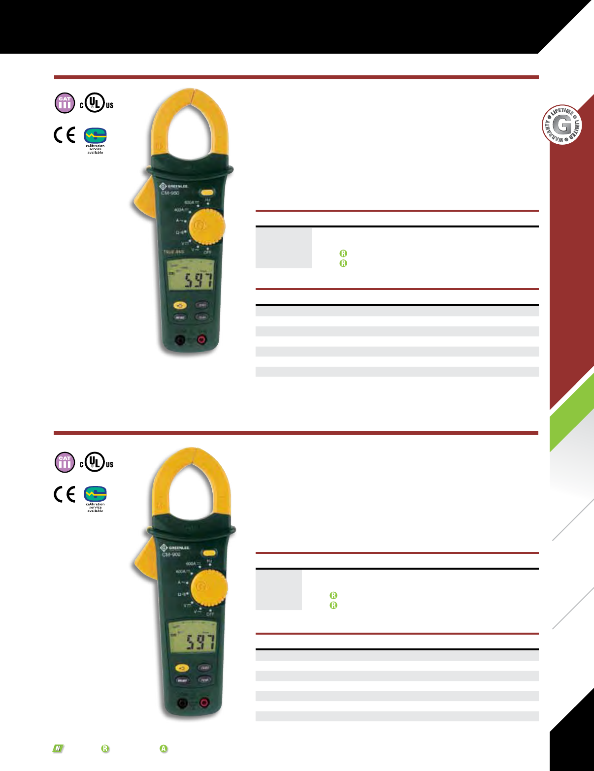 result of ISO procedures or customer quality audit requirements. Greenlee Textron Inc. can provide calibration service for specifically marked hand-held electrical test