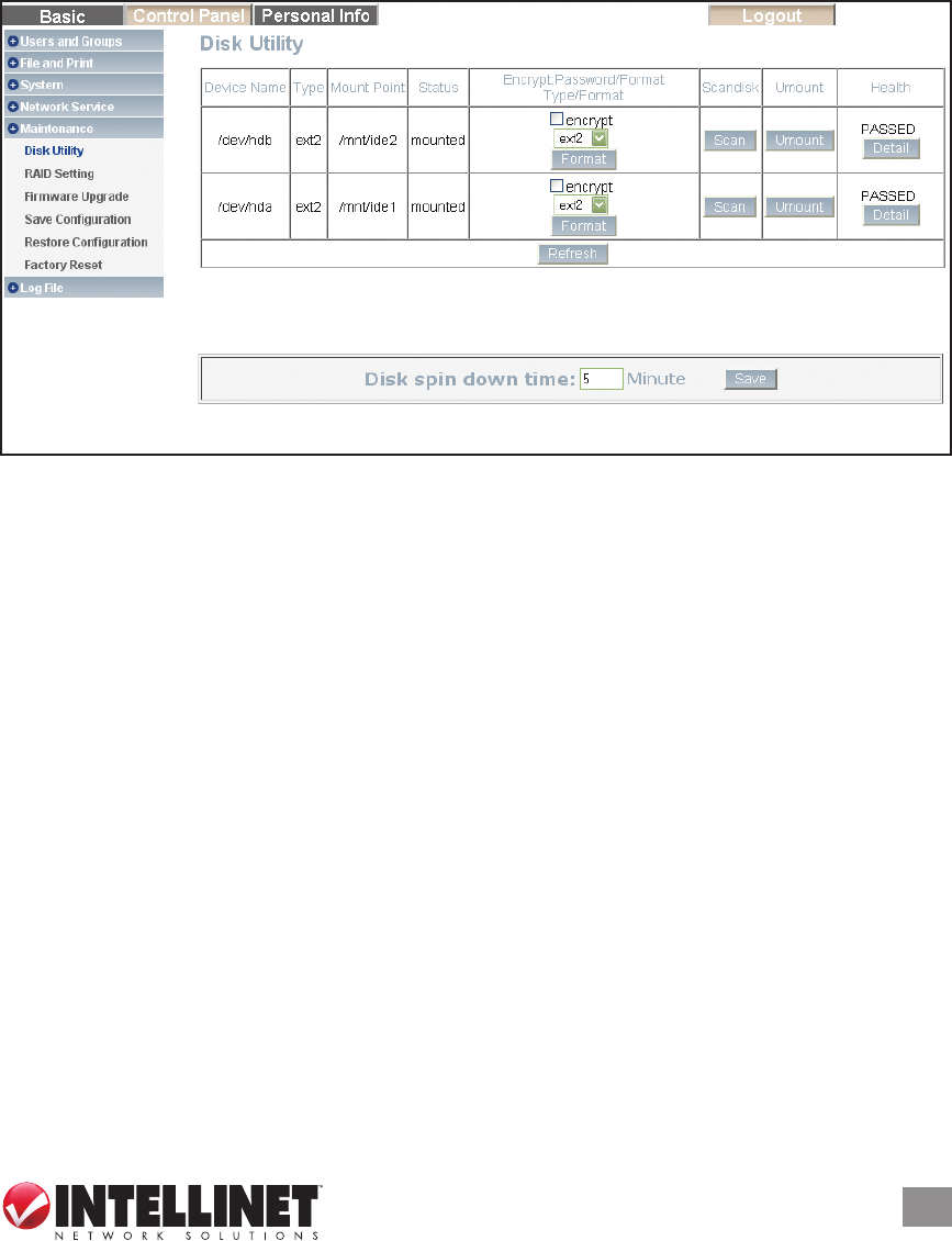• Adjustable hard drive spin-down time