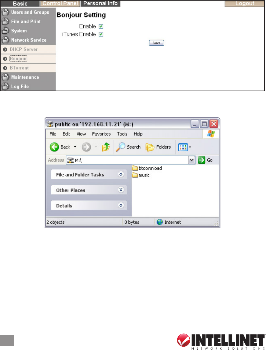 • Integrated iTunes Digital Audio Access Protocol (DAAP) server delivers audio