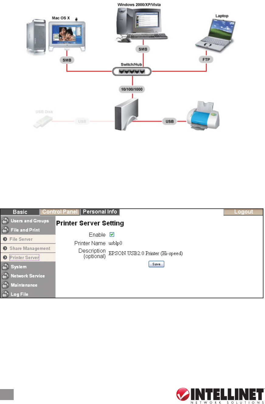 • Supported network clients: Windows, Linux, Mac OS