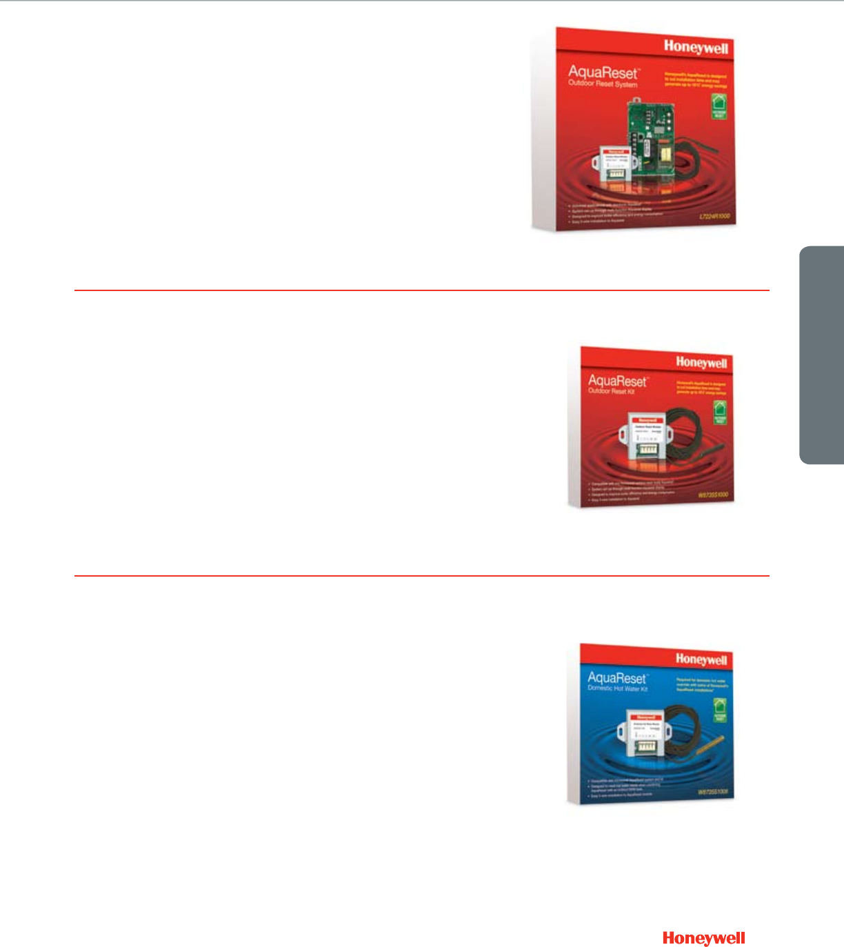 Honeywell AquaReset Kit W8735S1000 Honeywel l Aq uaRes et M odul e and Wire d Sen sor Upsell as an ad d-on when ins talli ng a new boil er th at c omes from