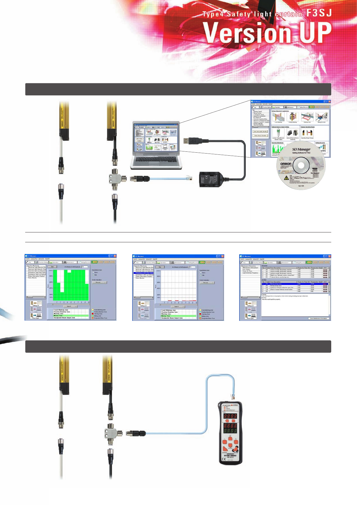 The "SD Manager" PC Setting Support Software helps reduce the time required for installing and troubleshooting the Safety Light Curtain.