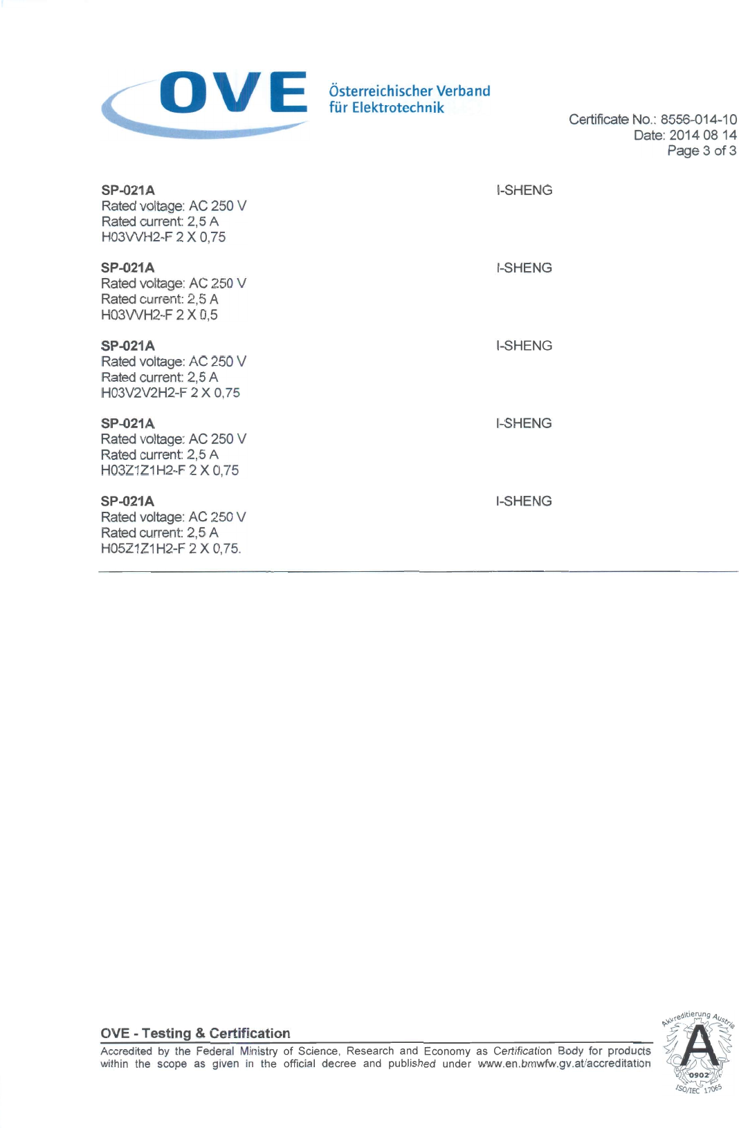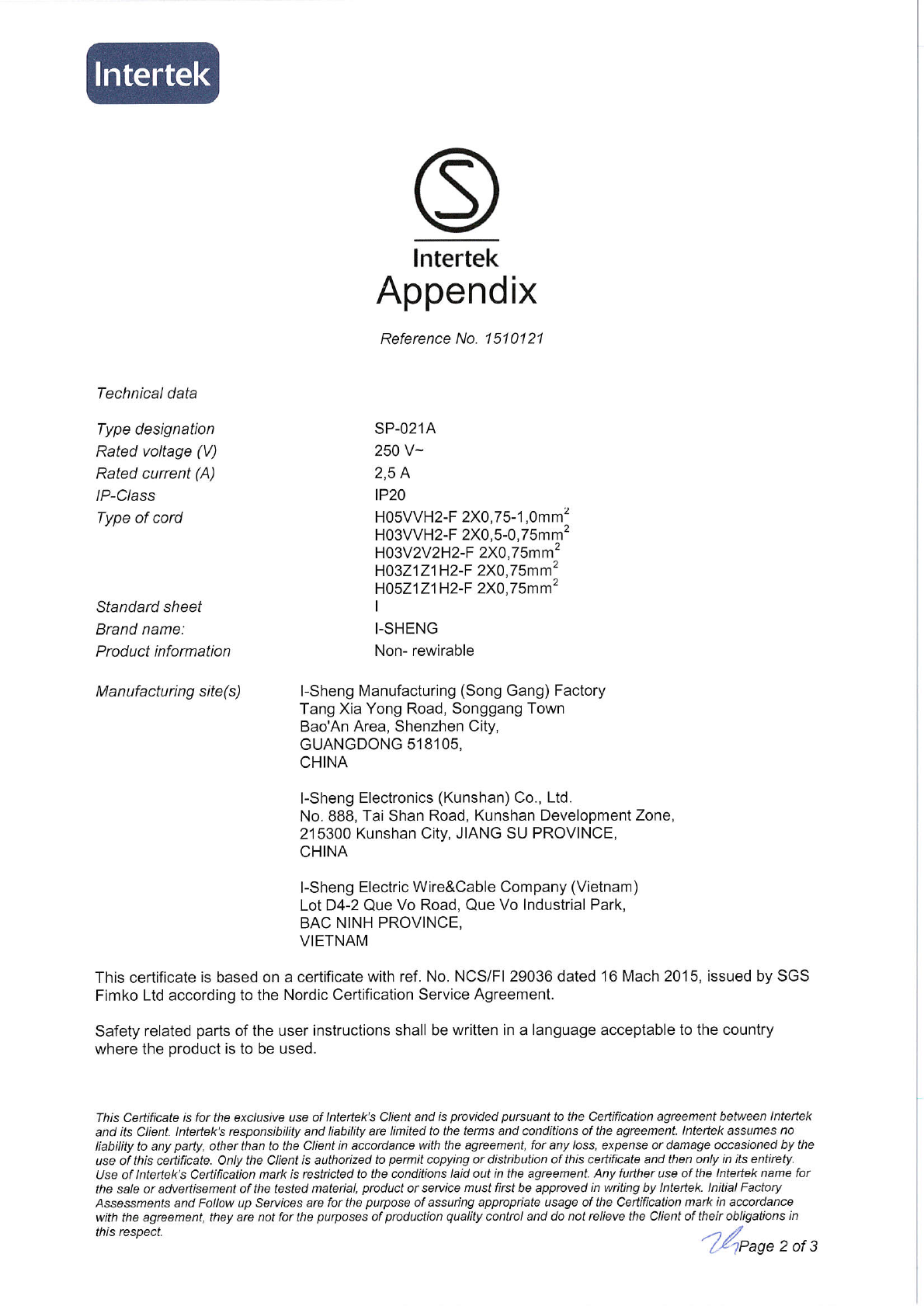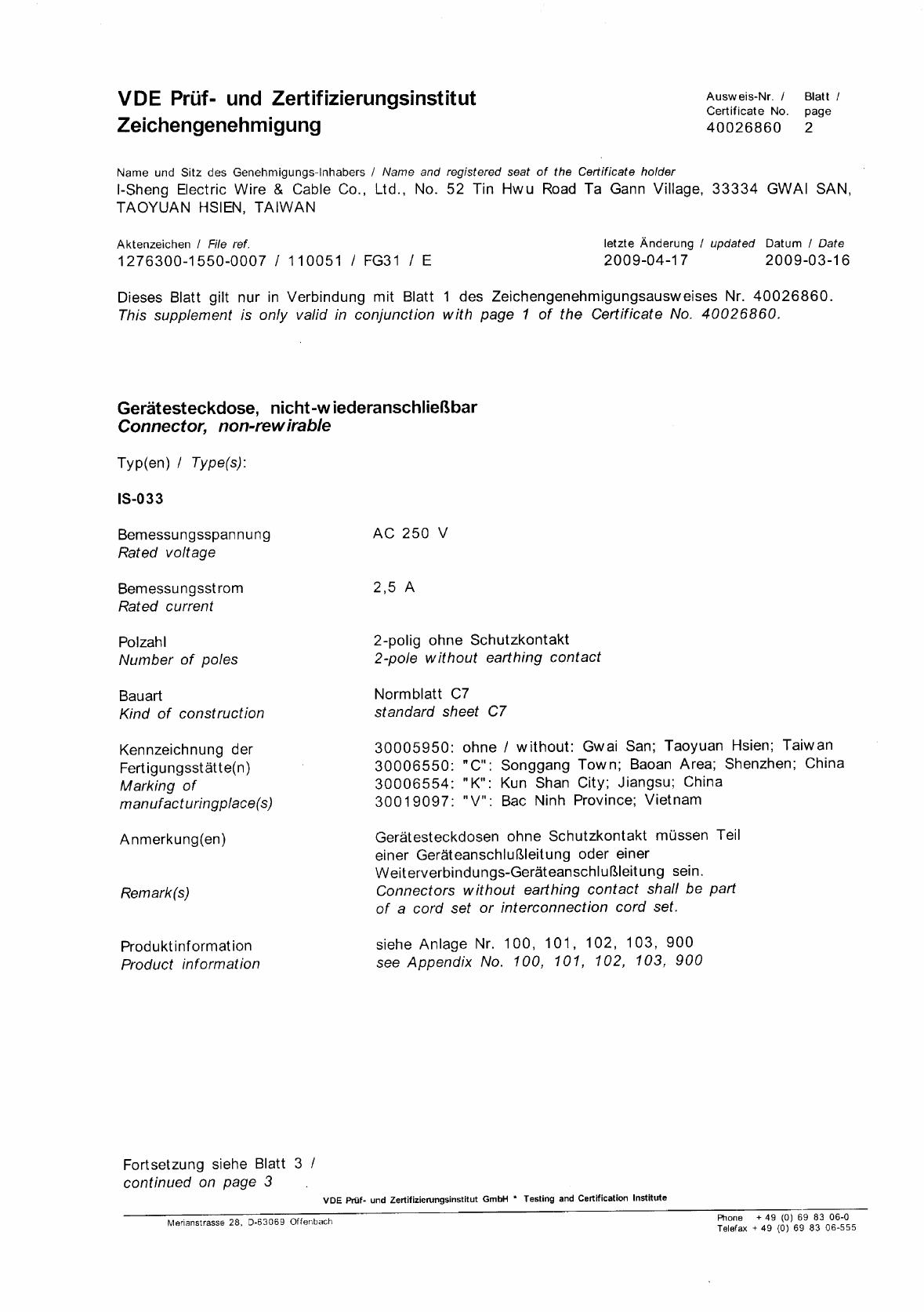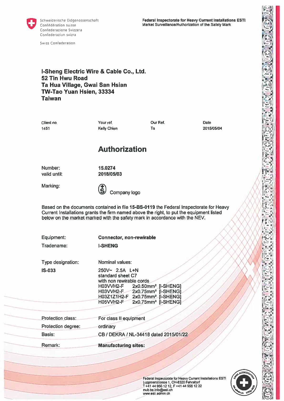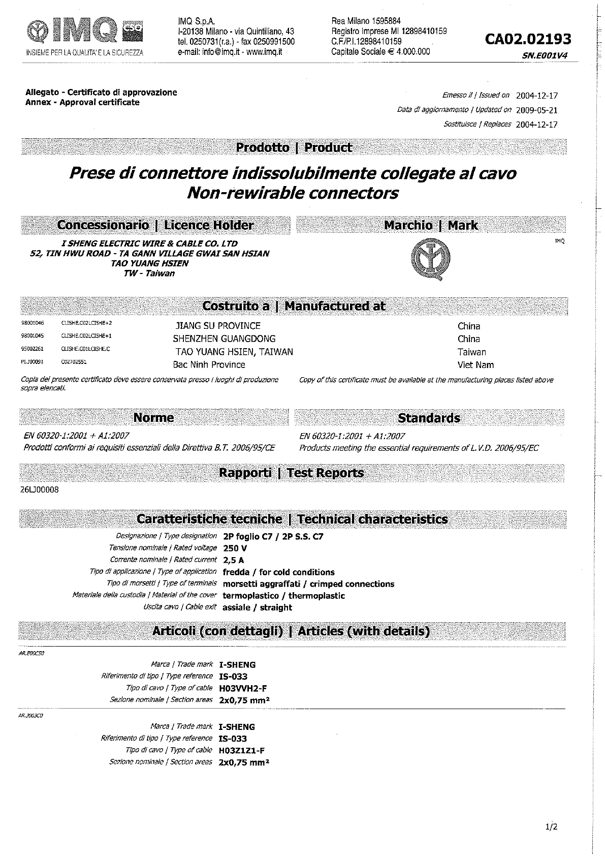 Referenz/Reference I-Sheng Electric Wire & Cable