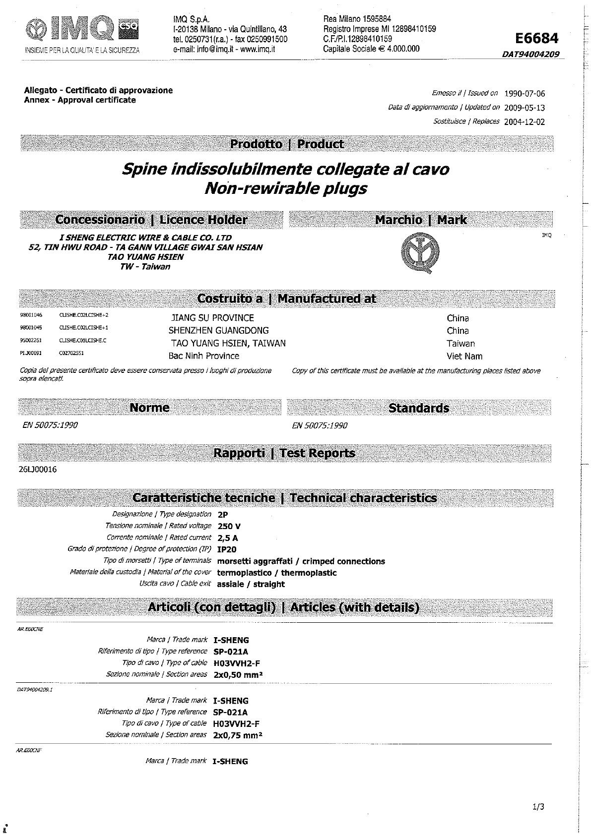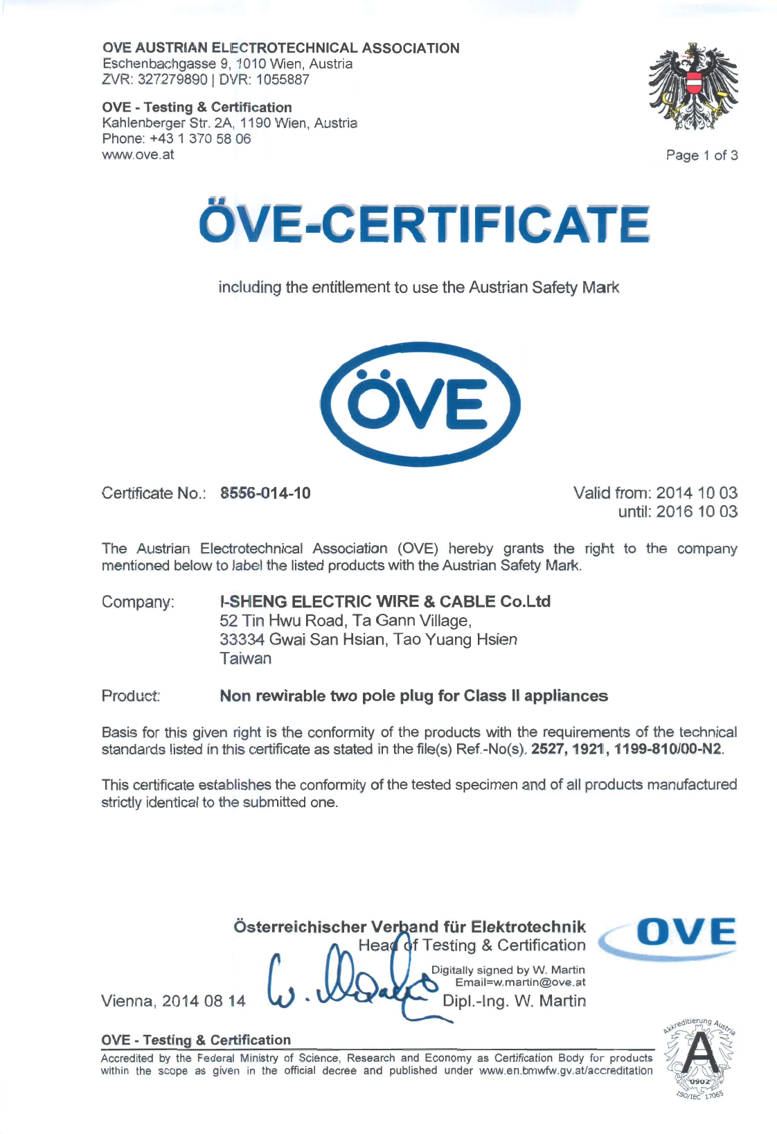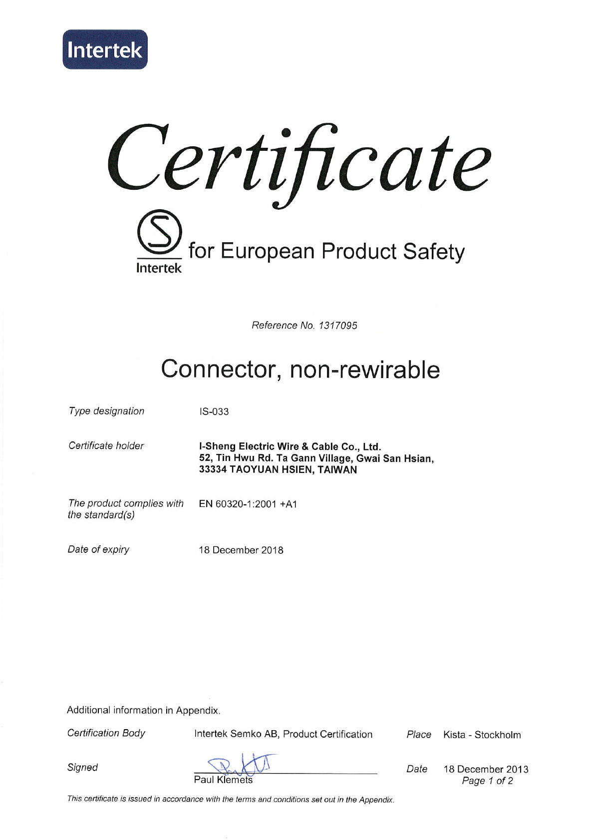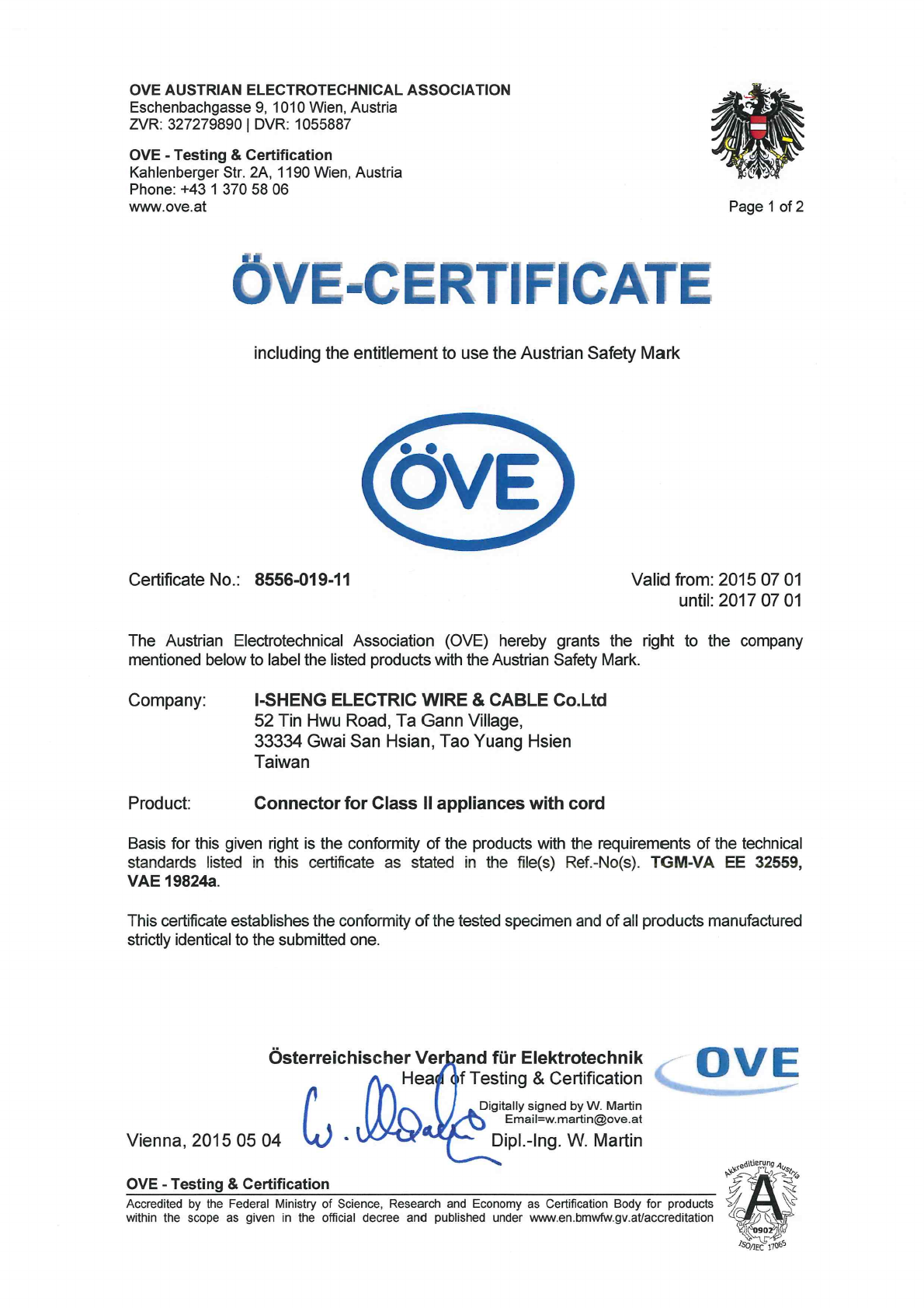 Referenz/Reference I-Sheng Electric Wire & Cable