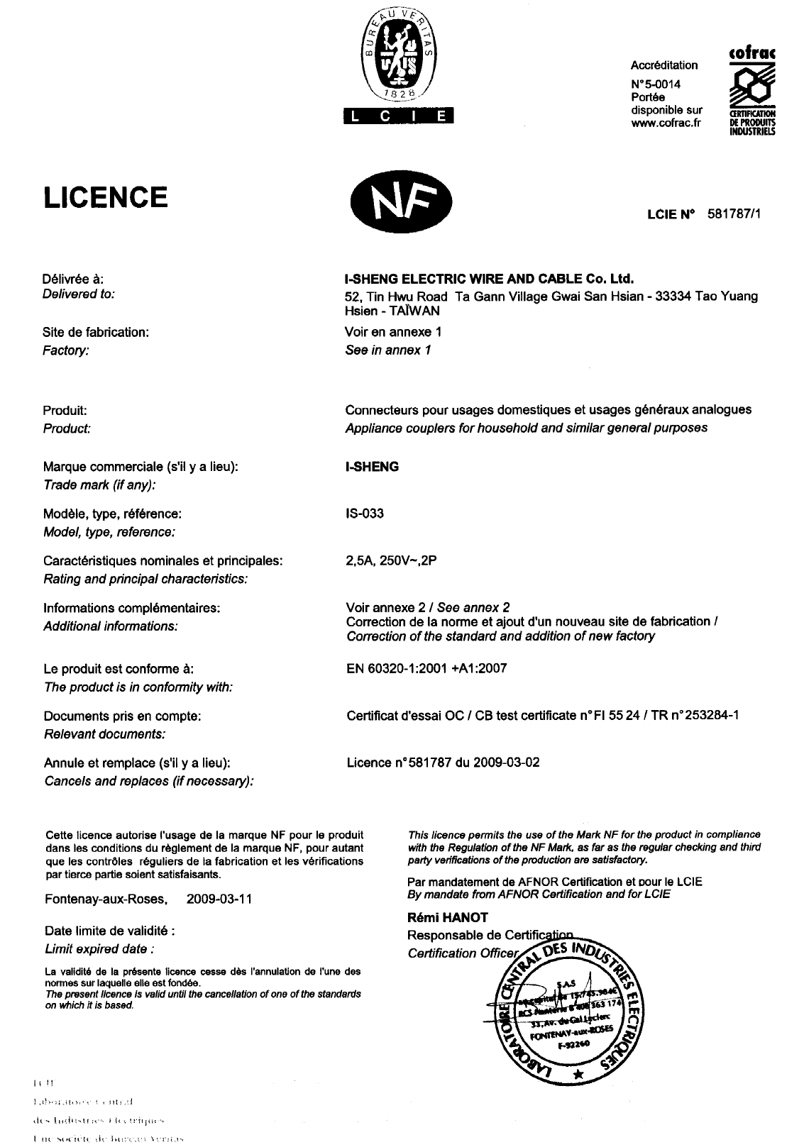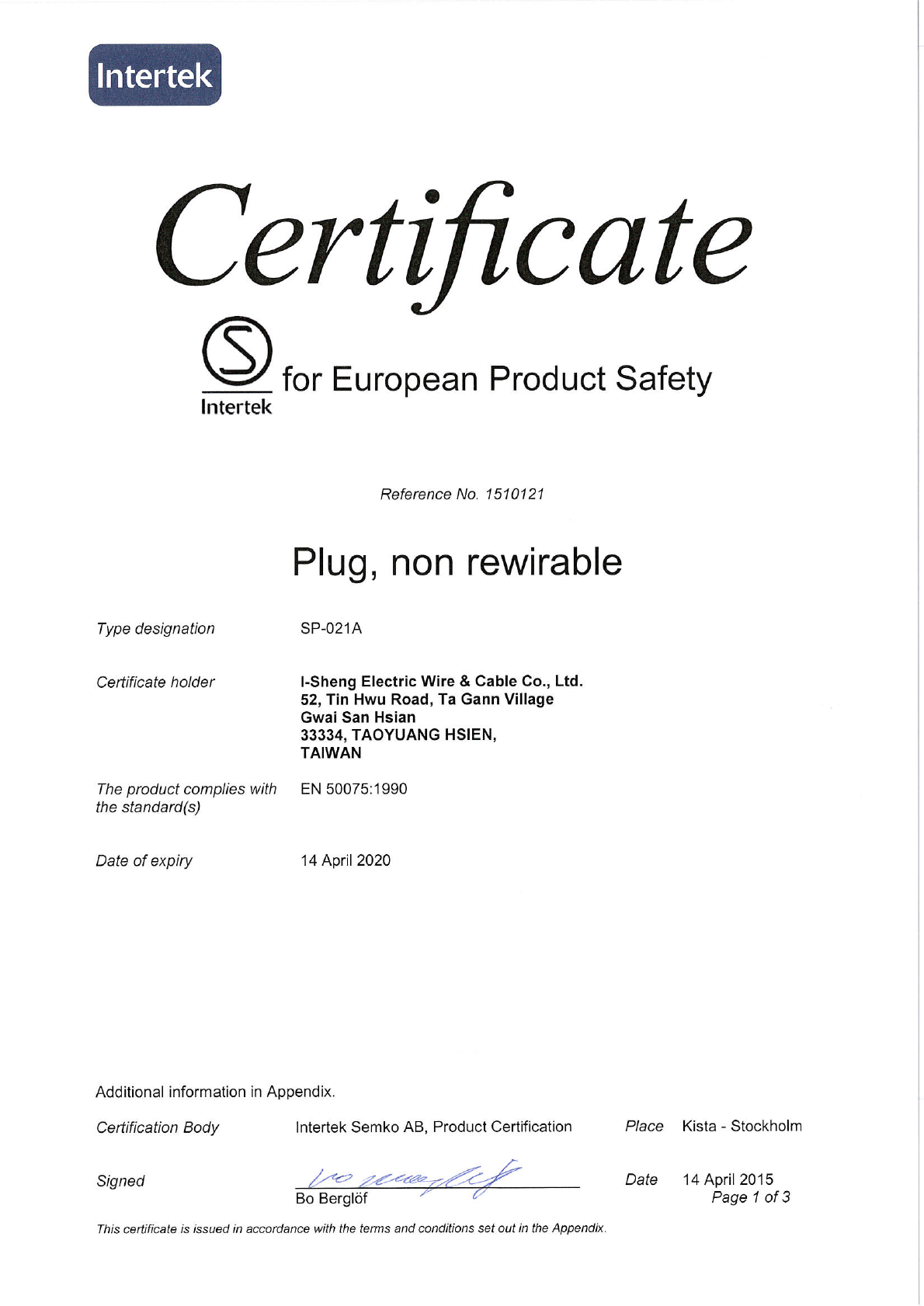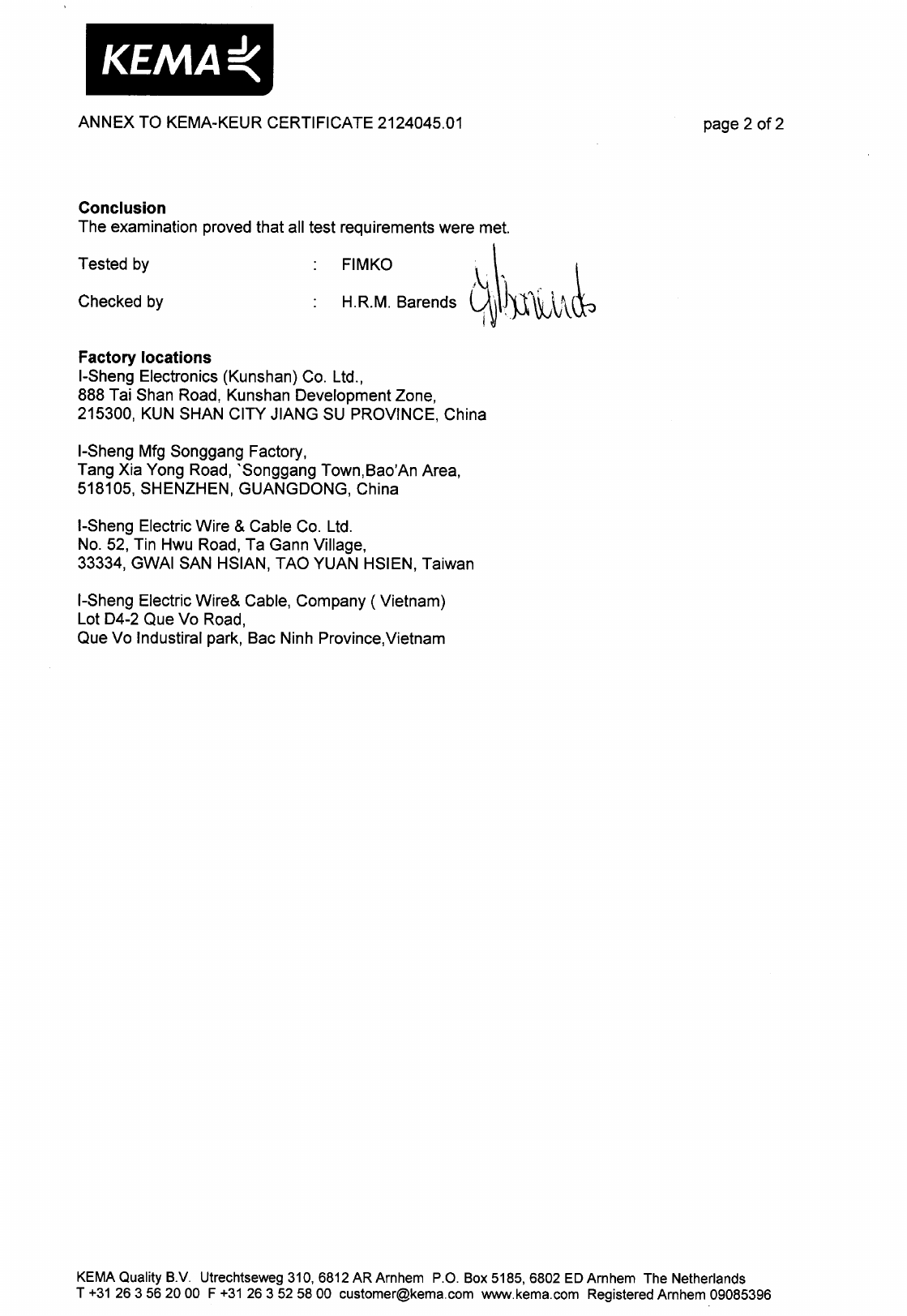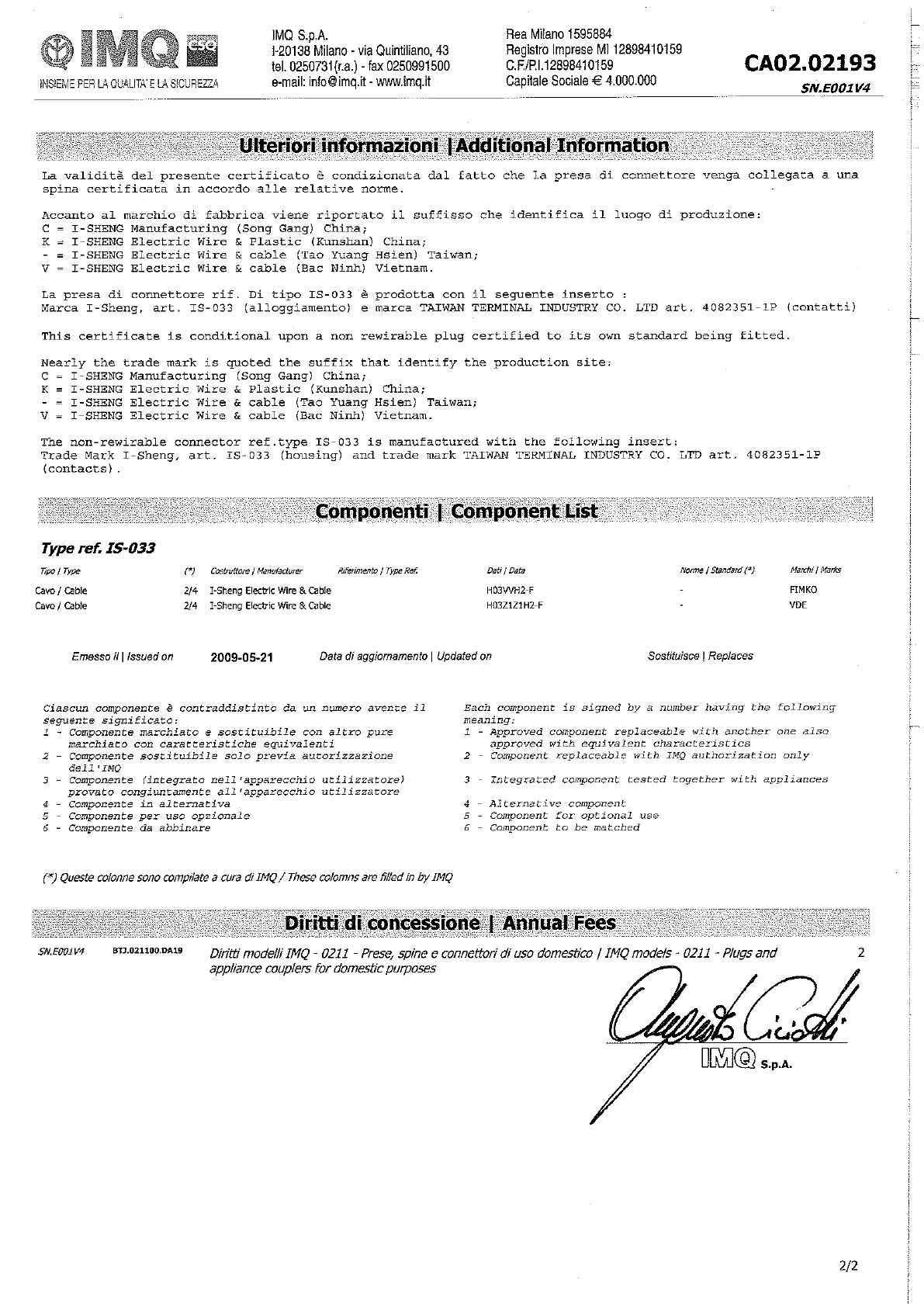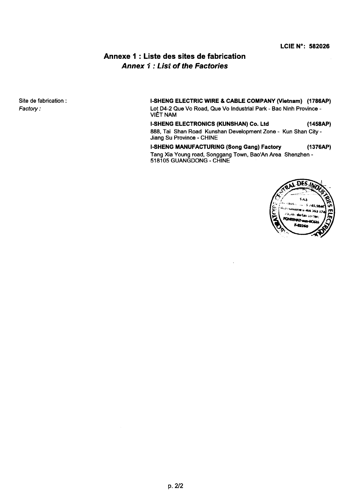 Referenz/Reference I-Sheng Electric Wire & Cable