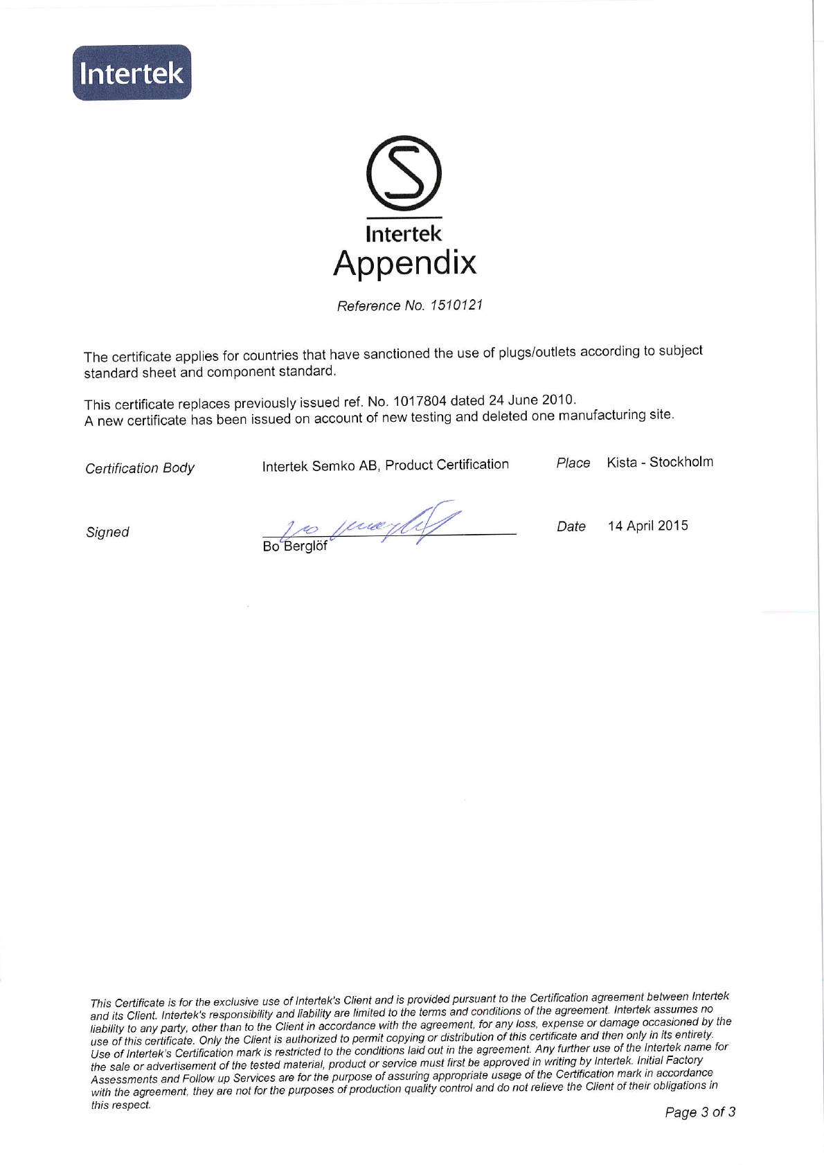 This supplement is part of the Certificate No. 40013649.