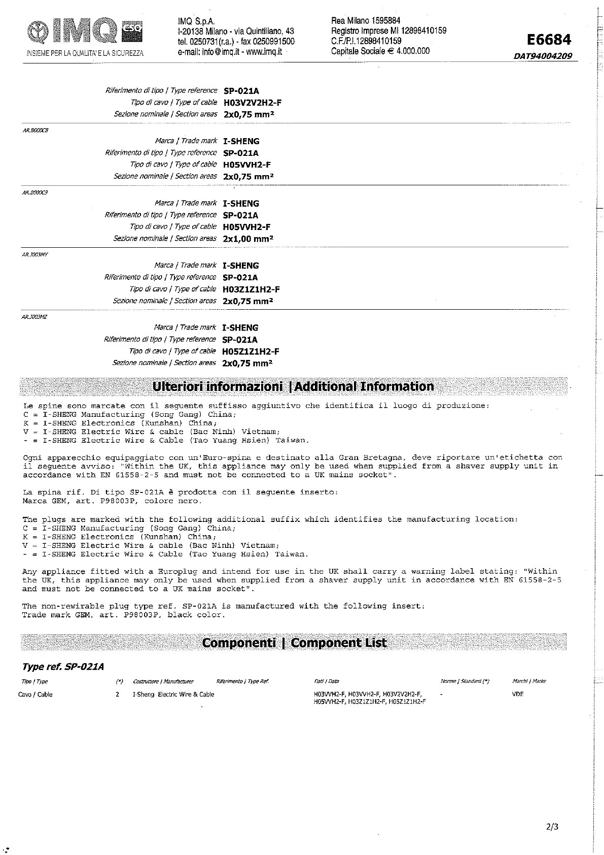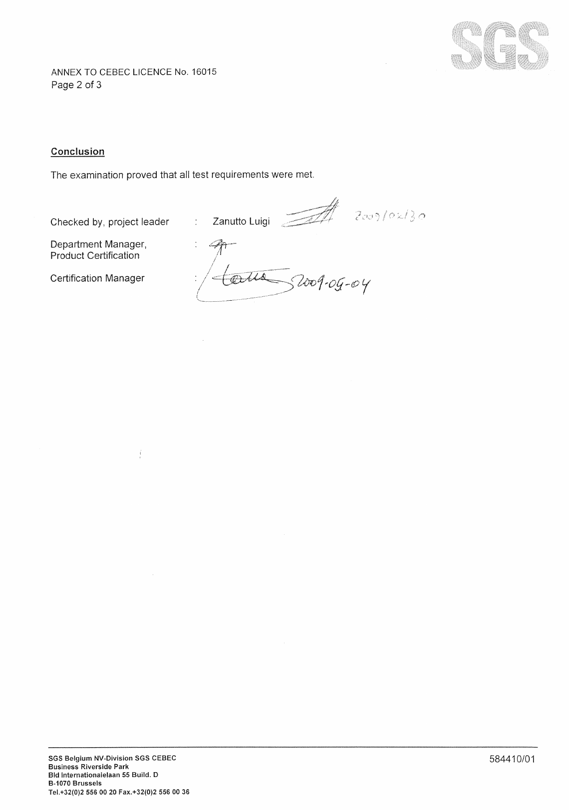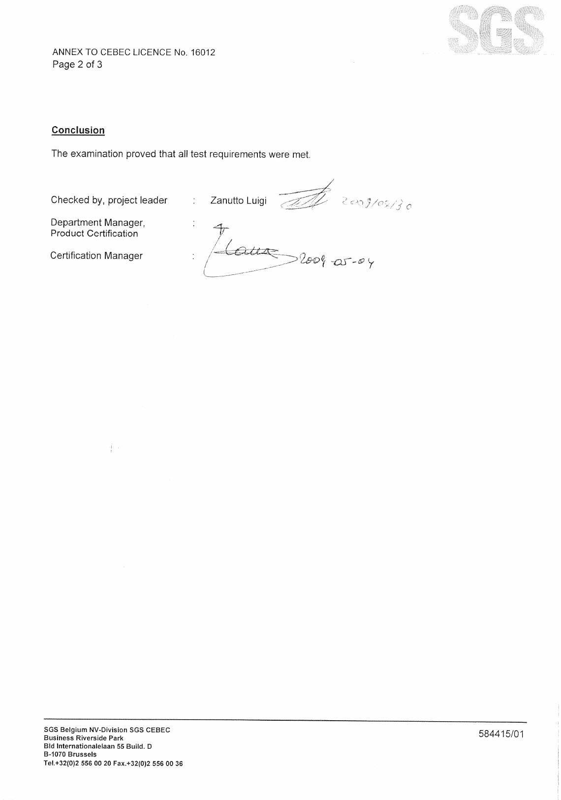 This supplement is only valid in conjunction with page 1 of the Certificate No. 40013649.