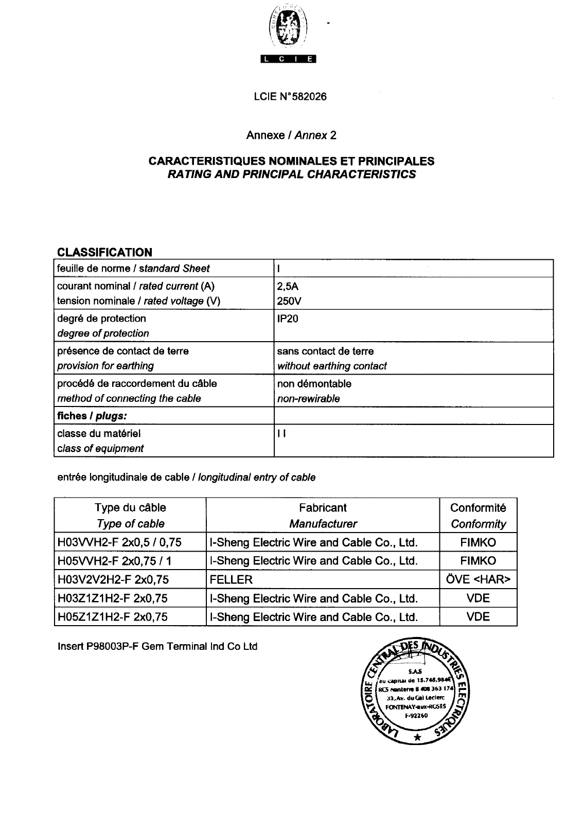 Rated at Input: 250 V~, 2.5A