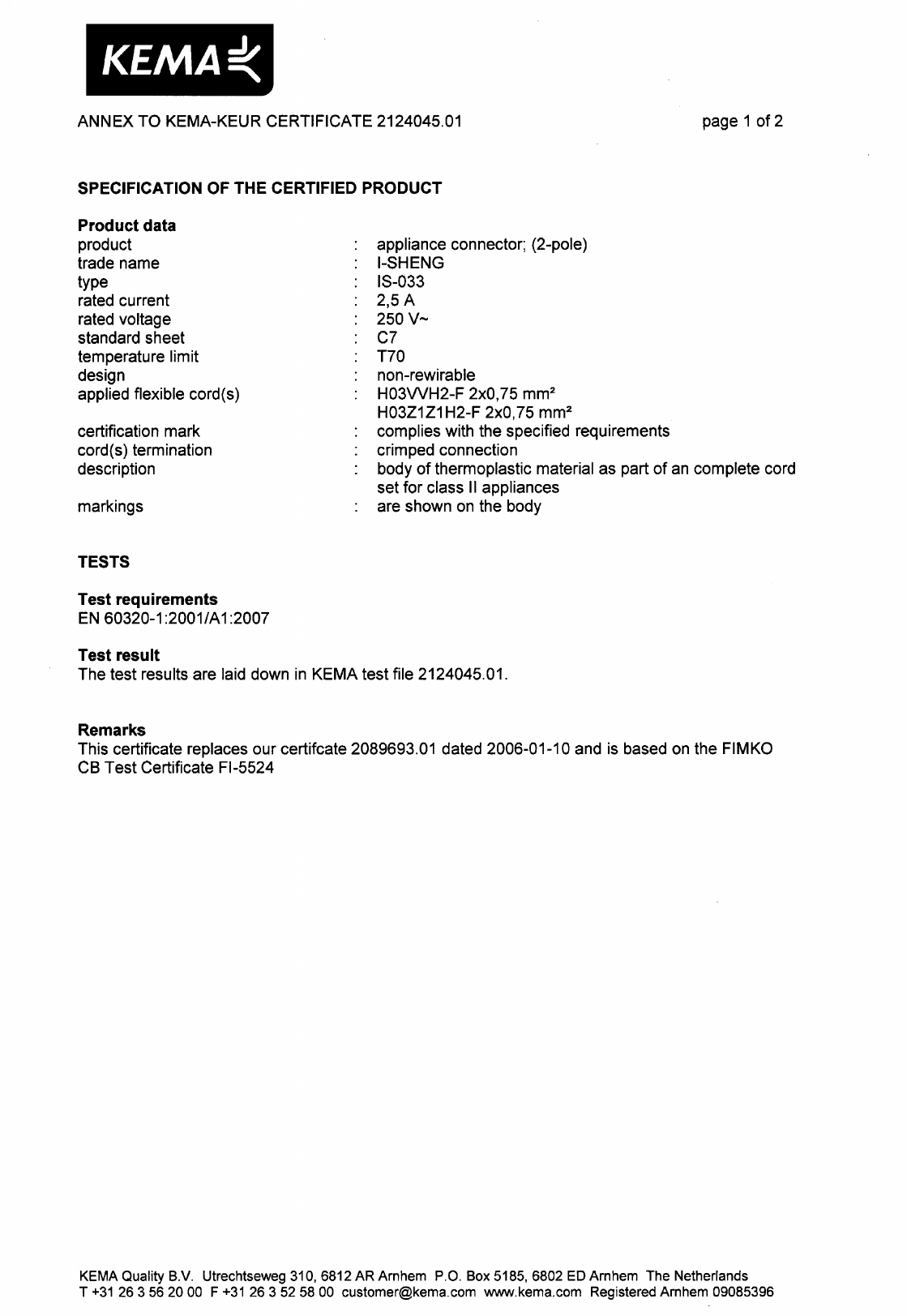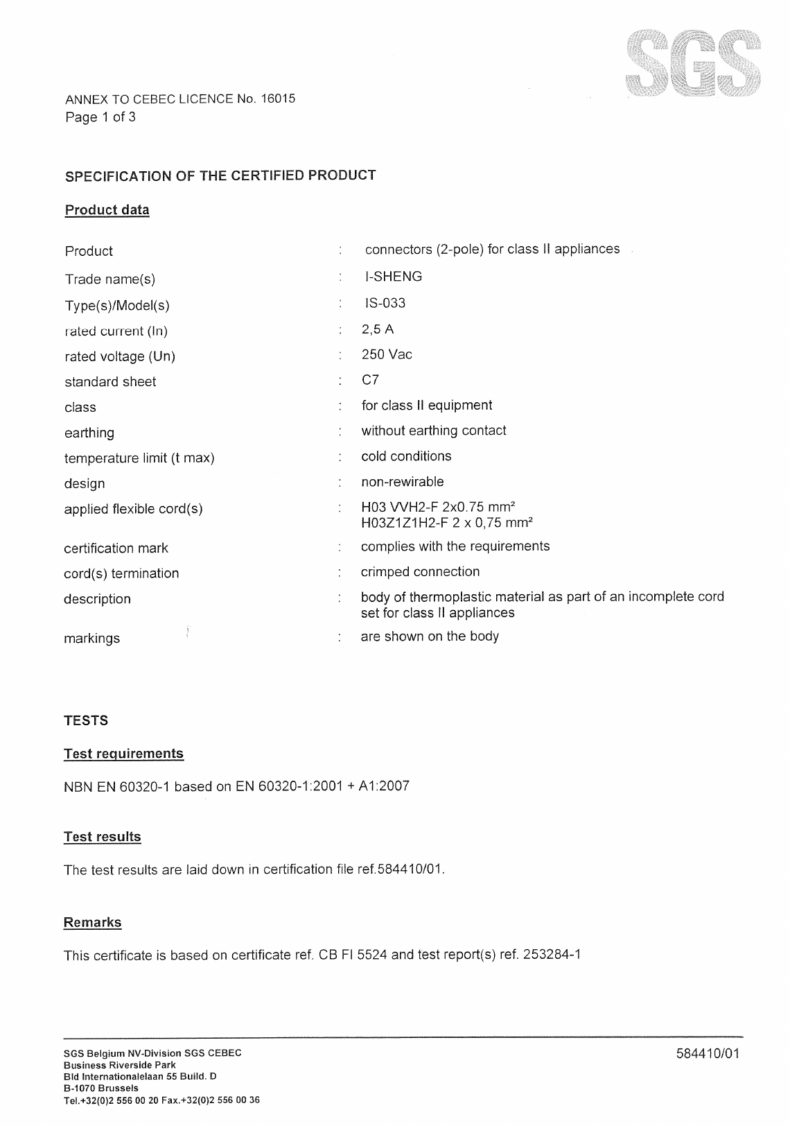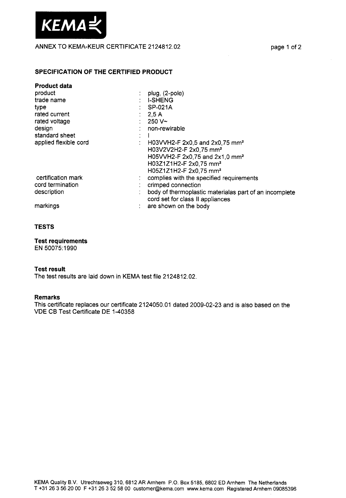 : Pdf 561099 Zunidata Power Cord Vde Certificate 561099_Zunidata_power_cord_VDE_certificate CertsReports 561099 ProductFiles