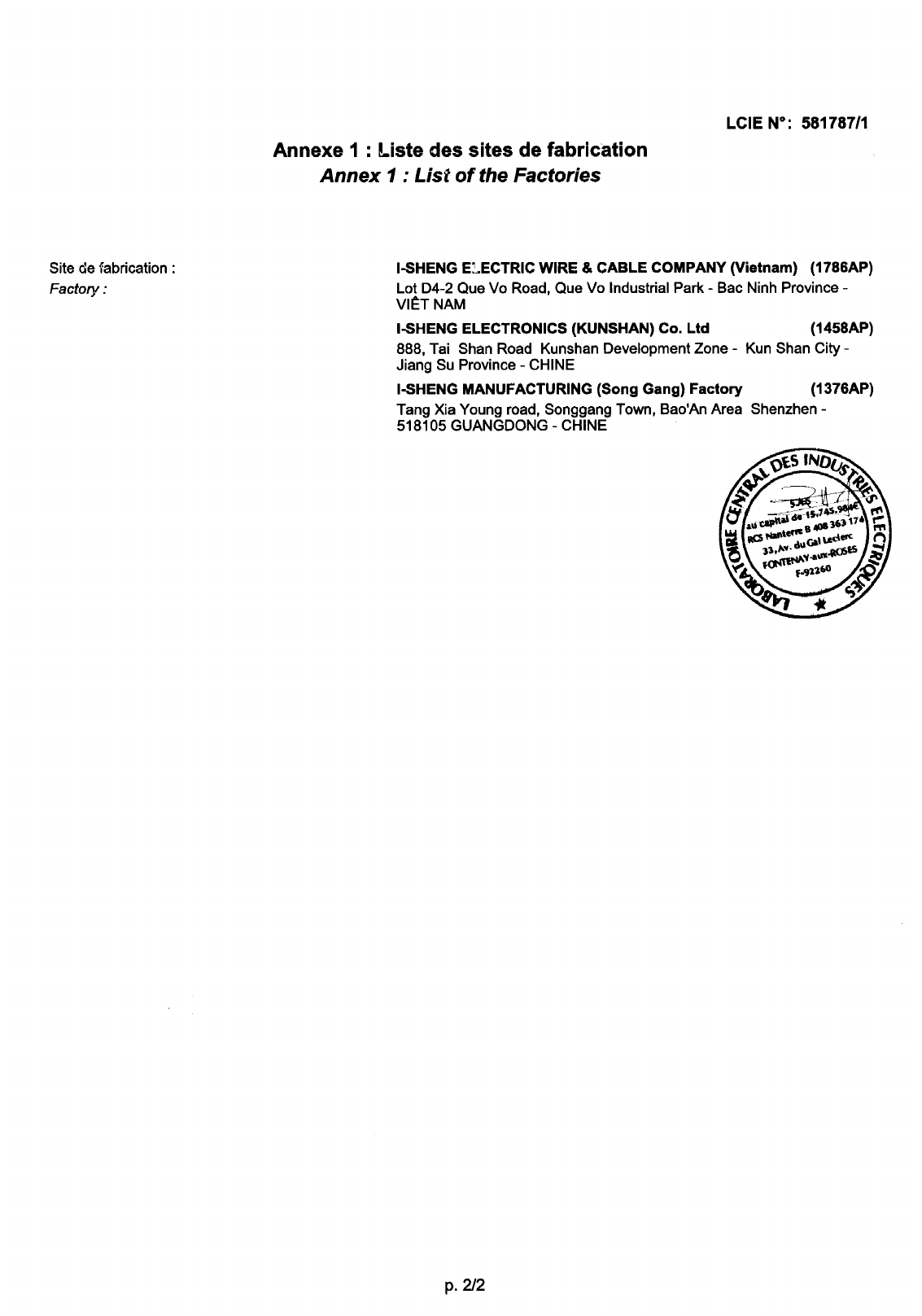 Referenz/Reference I-Sheng Mfg (Song Gang) Factory