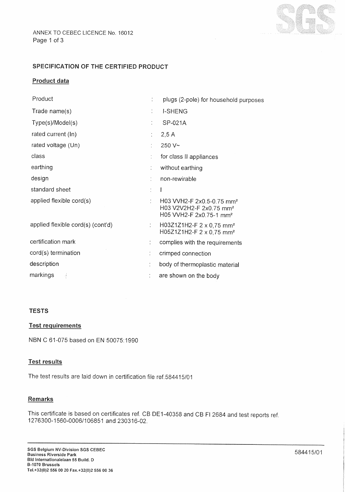 Remark The plugs are additional correponding with IEC 60884-1(ed.3)