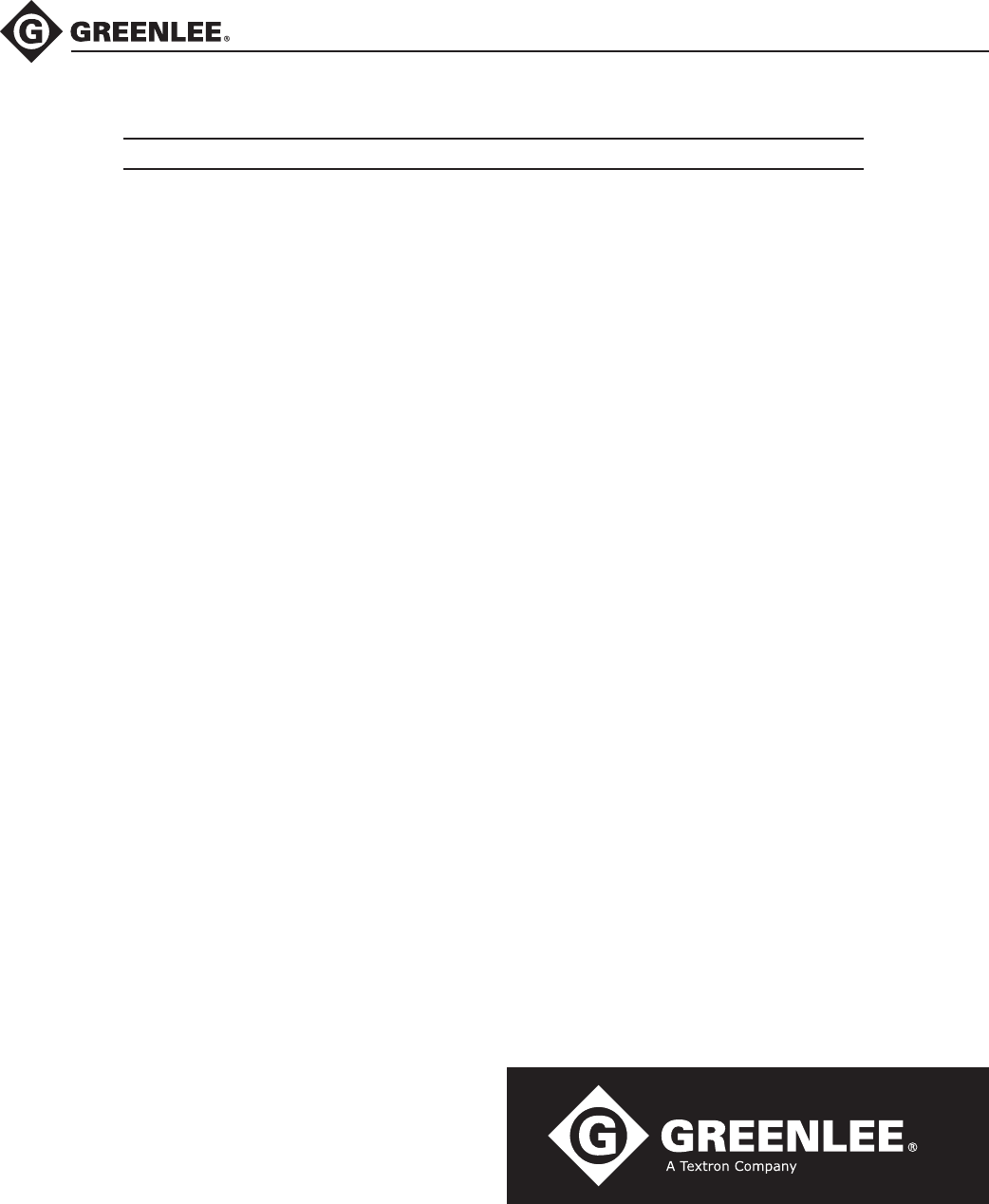Greenlee / A Textron Company 4455 Boeing Dr. • Rockford, IL 61109-2988 USA • 815-397-7070