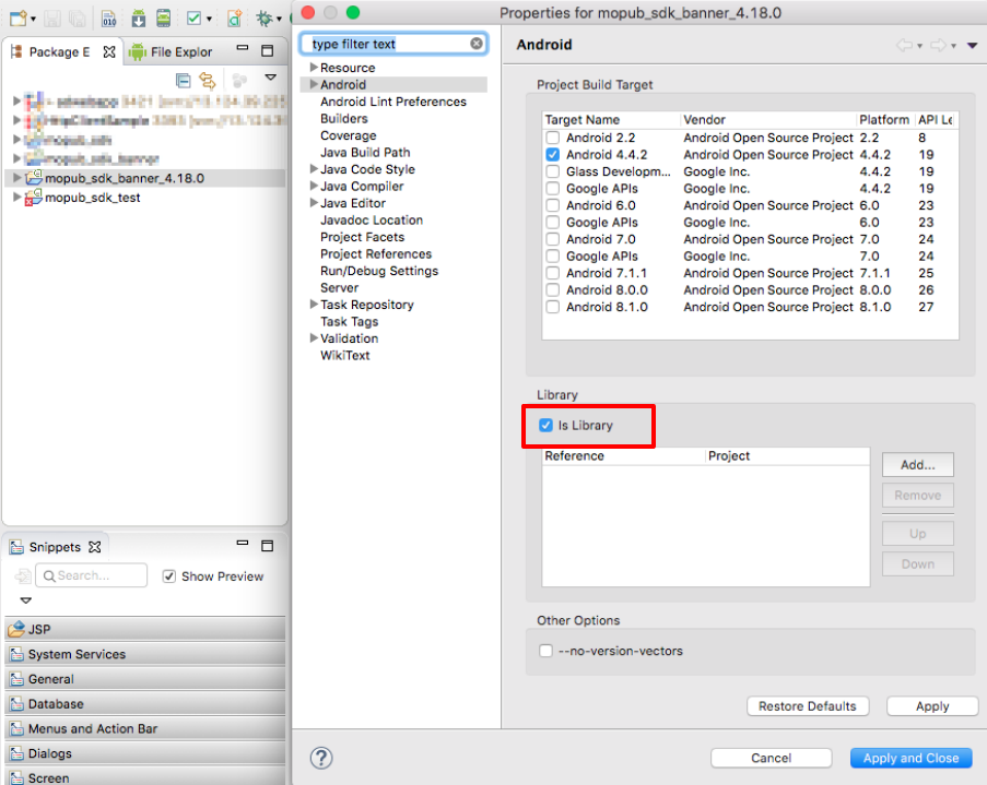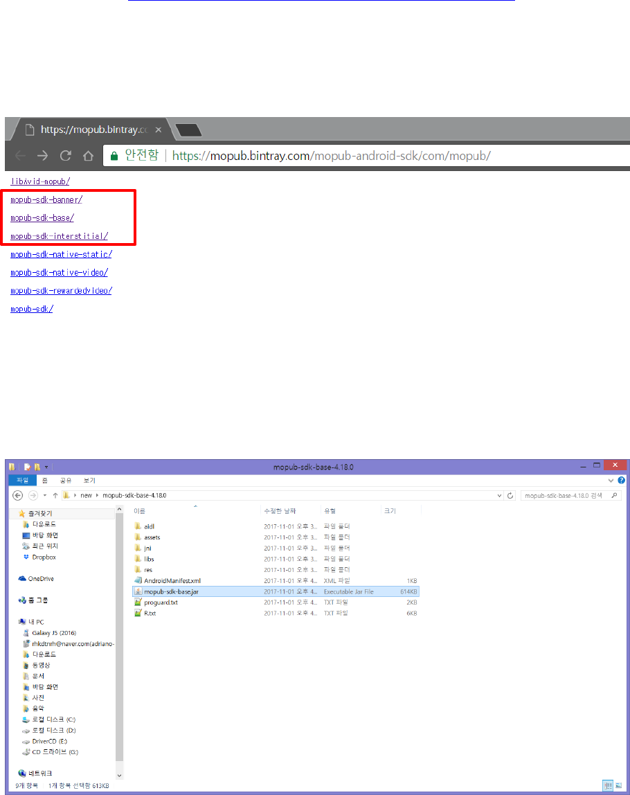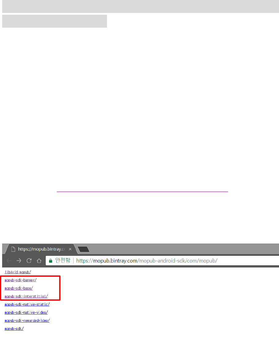 1. 위의 링크에서 mopub-sdk-base와 사용하시는 광고 상품(Banner, Interstitial)에 알맞은 디렉