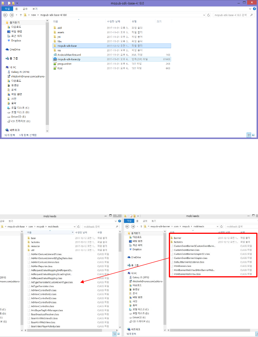 4. 3.에서 만들어진 mopub-sdk-base 폴더안에 압축 해제 후 생성된 mopub-sdk-banner,