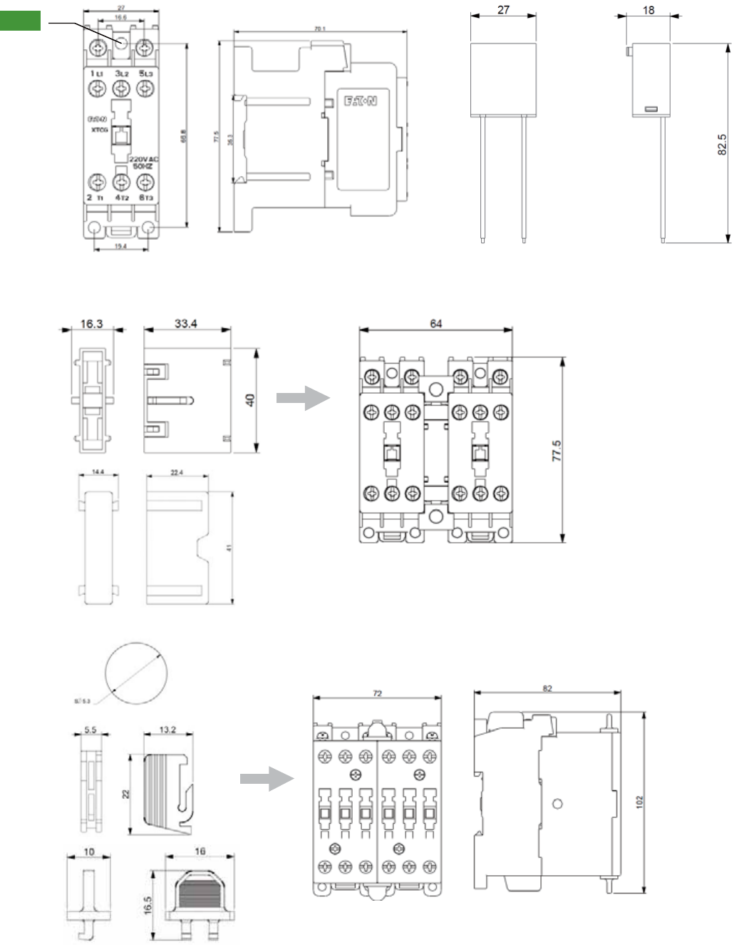 Auxiliary contact modules . . . . . . . . . . . . . . . . . . . . .