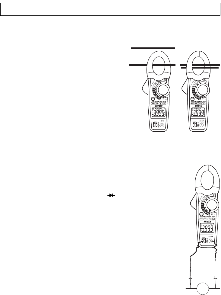 • Do not measure current on a circuit whose voltage exceeds 600V.