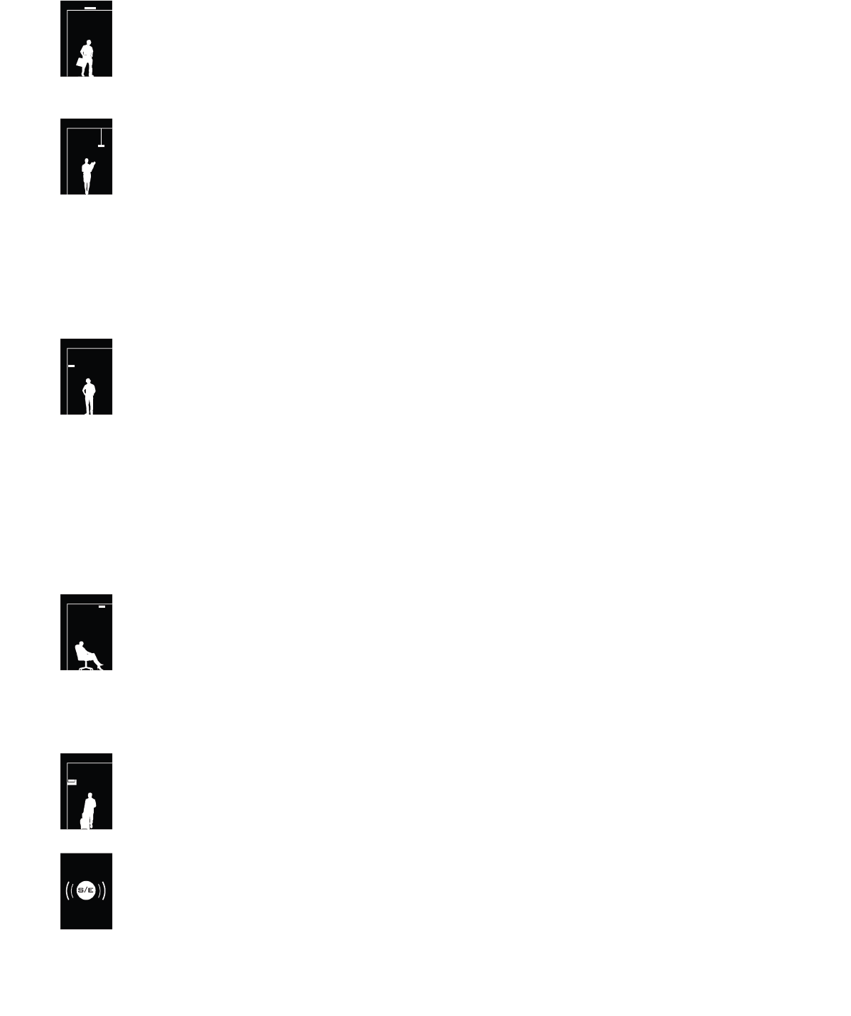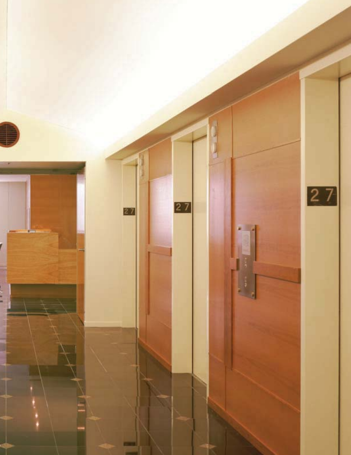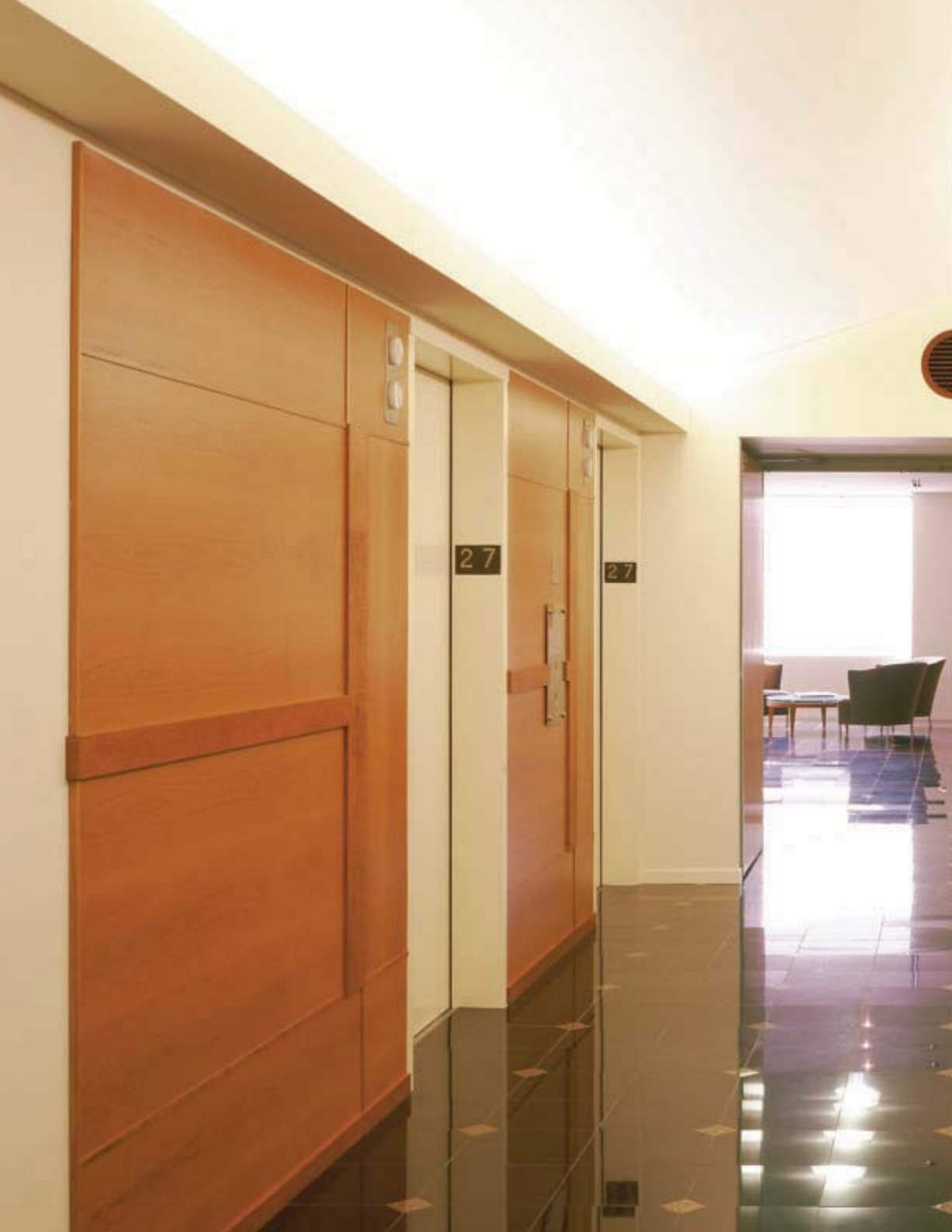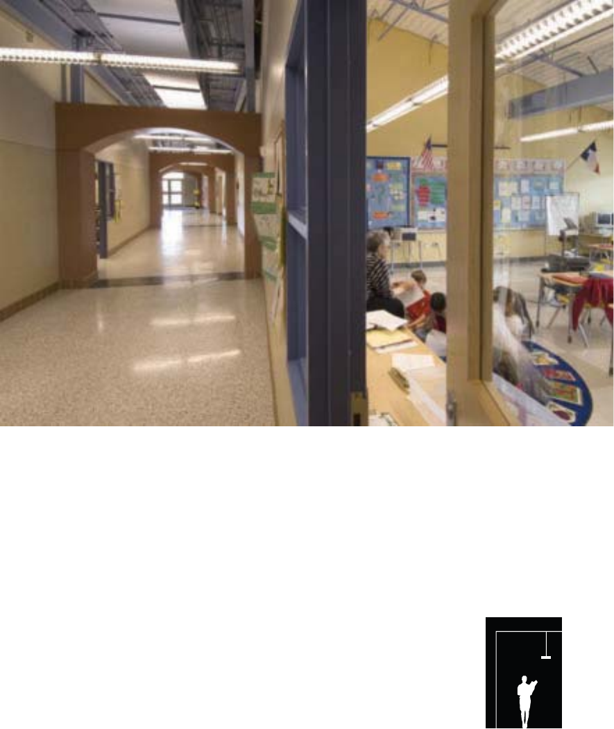 Corridors, room perimeters and restrooms, typically