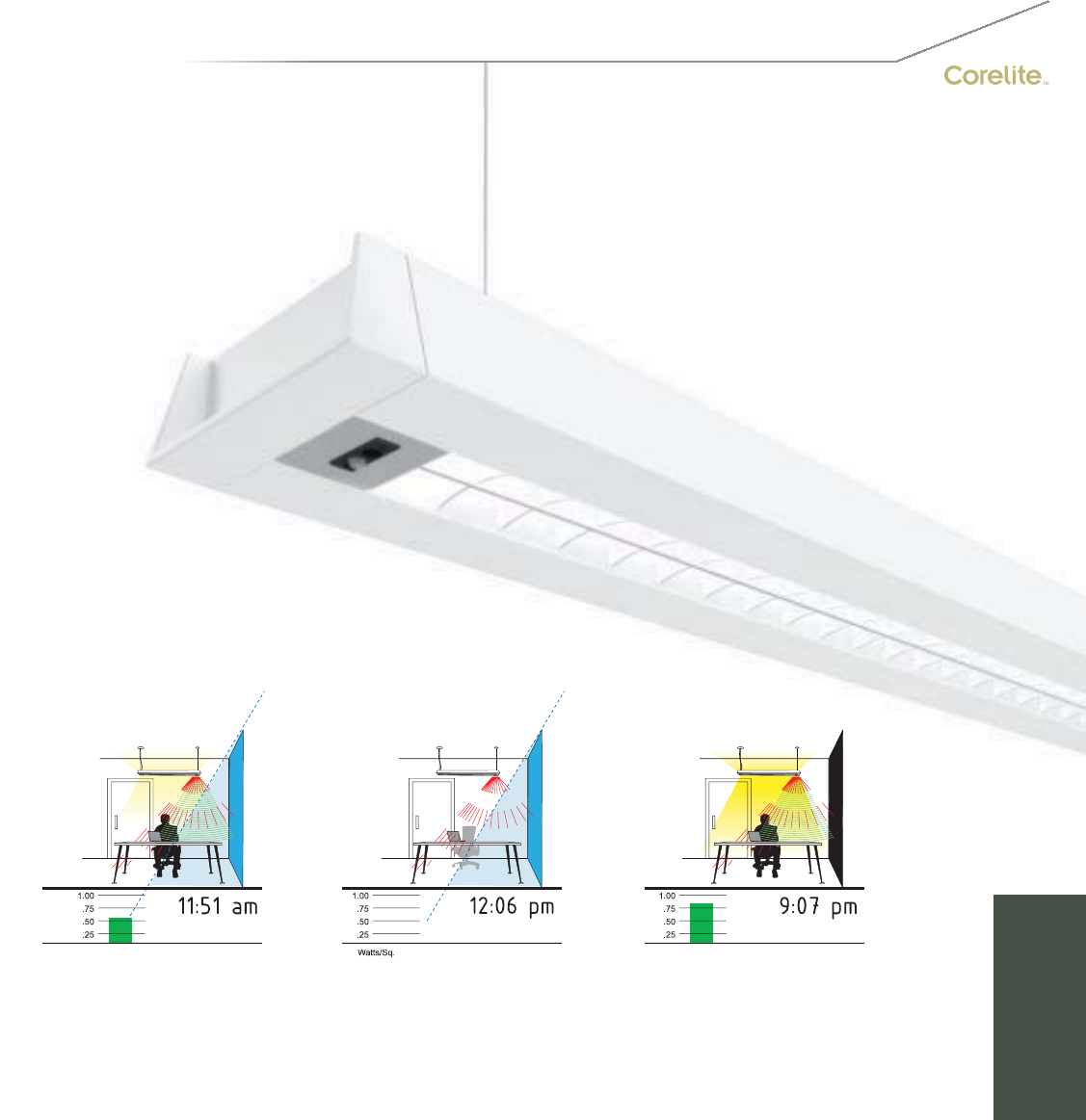 lighting, allowing for wide luminaire row spacing, Corelite