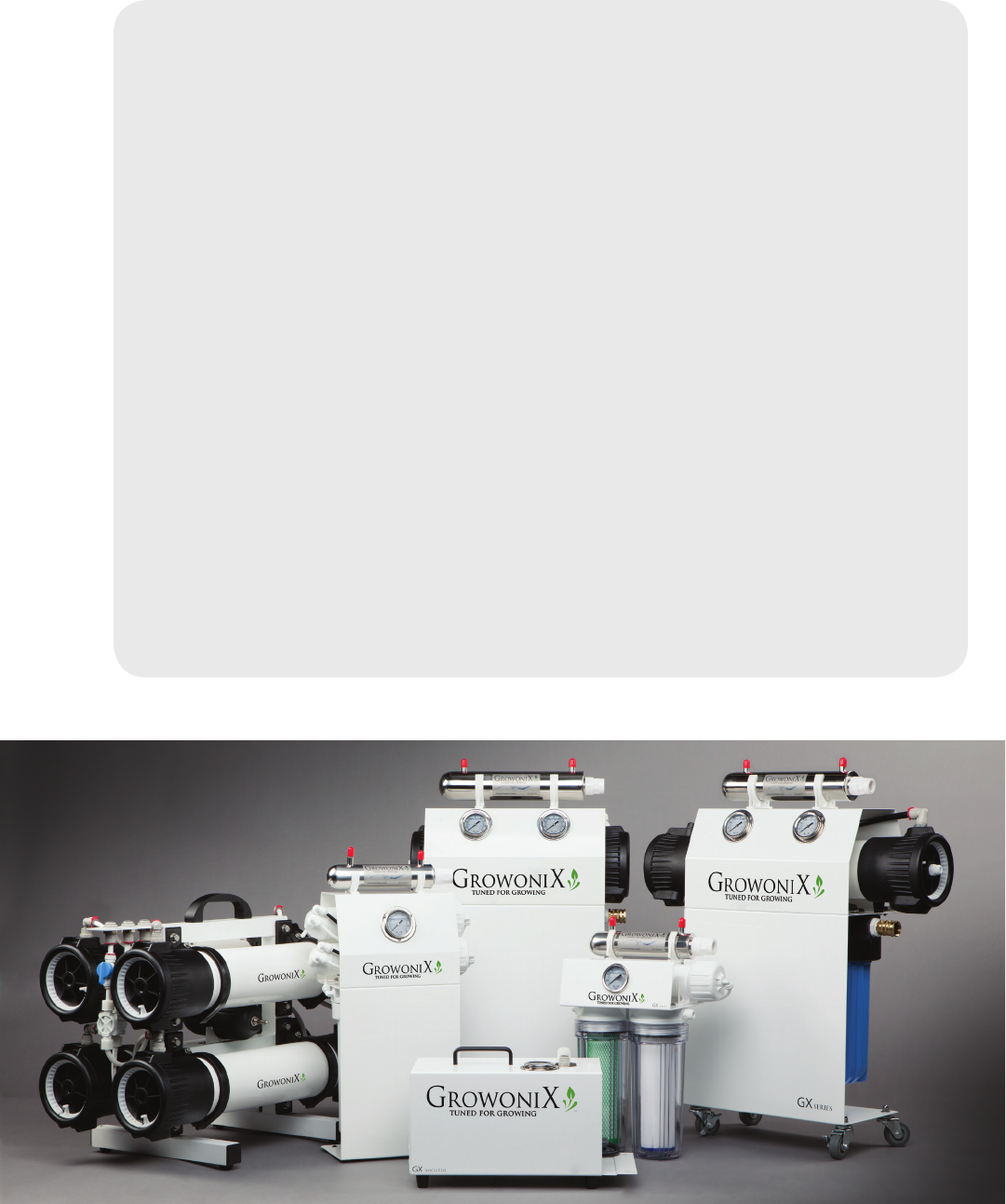 GrowoniX GX150/GX200 RO water lters are rated using supply water that is 77°F, 475ppm, at 70psi.