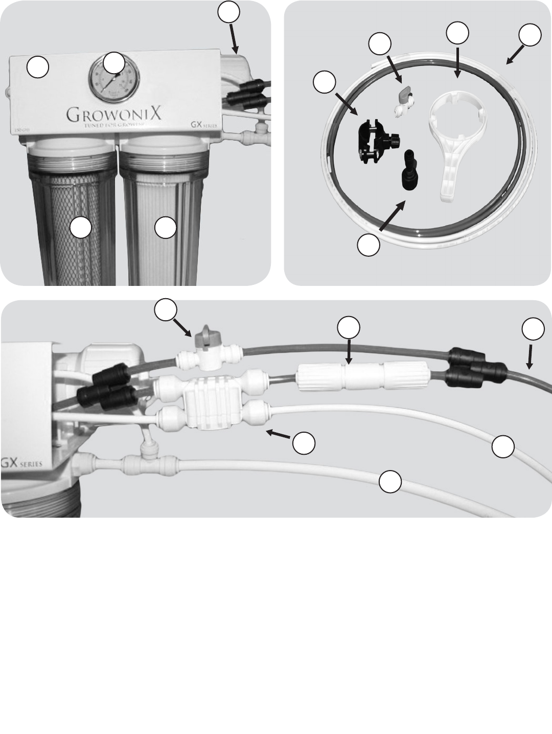 • A minimum of 40psi is recommended to operate GrowoniX water lters. If your inlet water