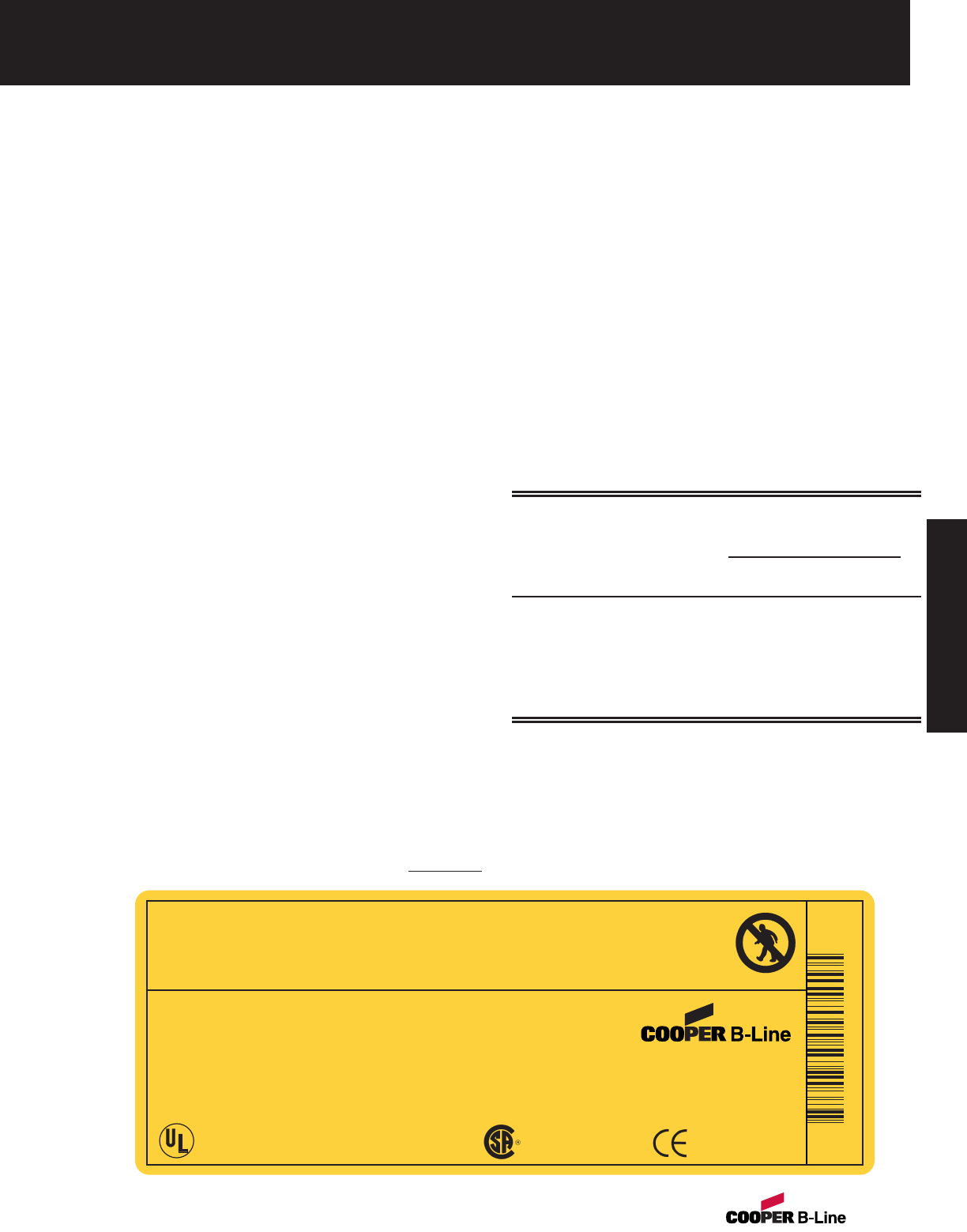 © 2009 Cooper B-Line, Inc. Printed in U.S.A. 10509