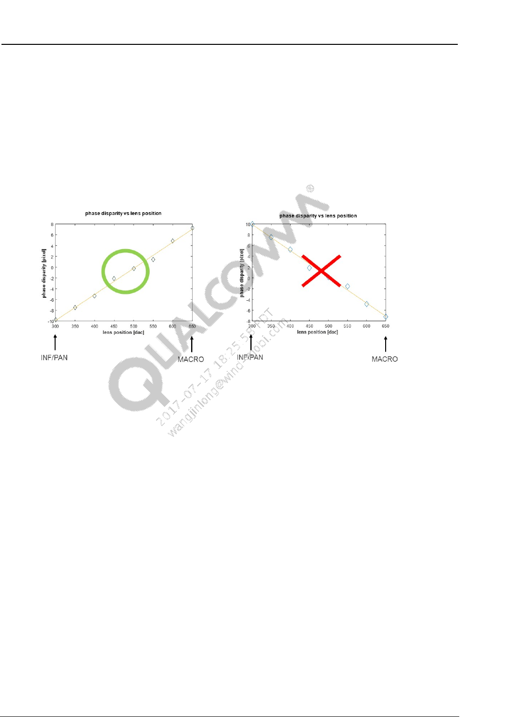 Figure 1-2 Positive slope of phase disparity in a camera module using a lens actuator with a positive sign
