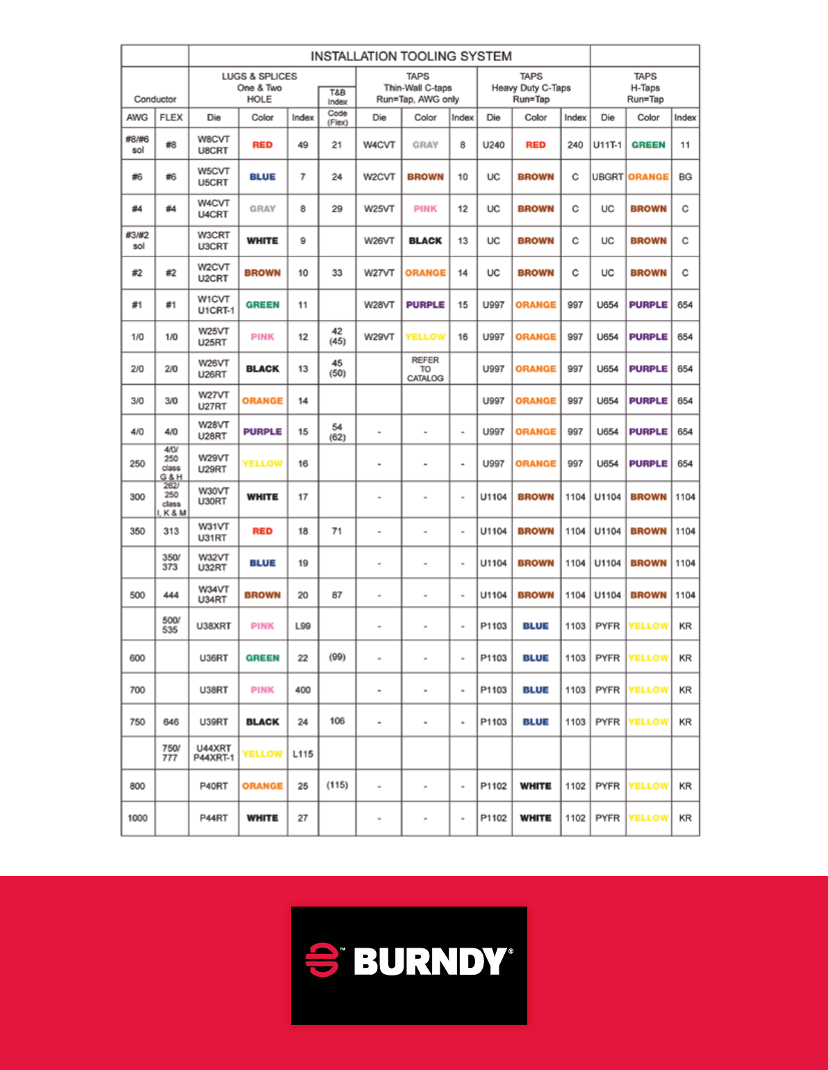 The BURNDY® Engineered System of coordinating dies, connectors and tools are always
