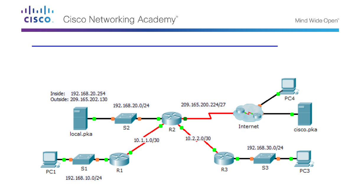 Configure R2 interfaces with the appropriate inside and outside NAT commands.