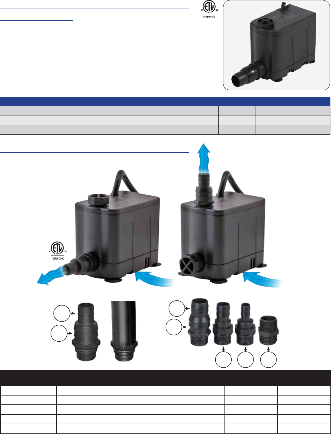 • CONVERTIBLE BOTTOM DRAW SUBMERSIBLE • ADJUSTABLE WATER PUMPS