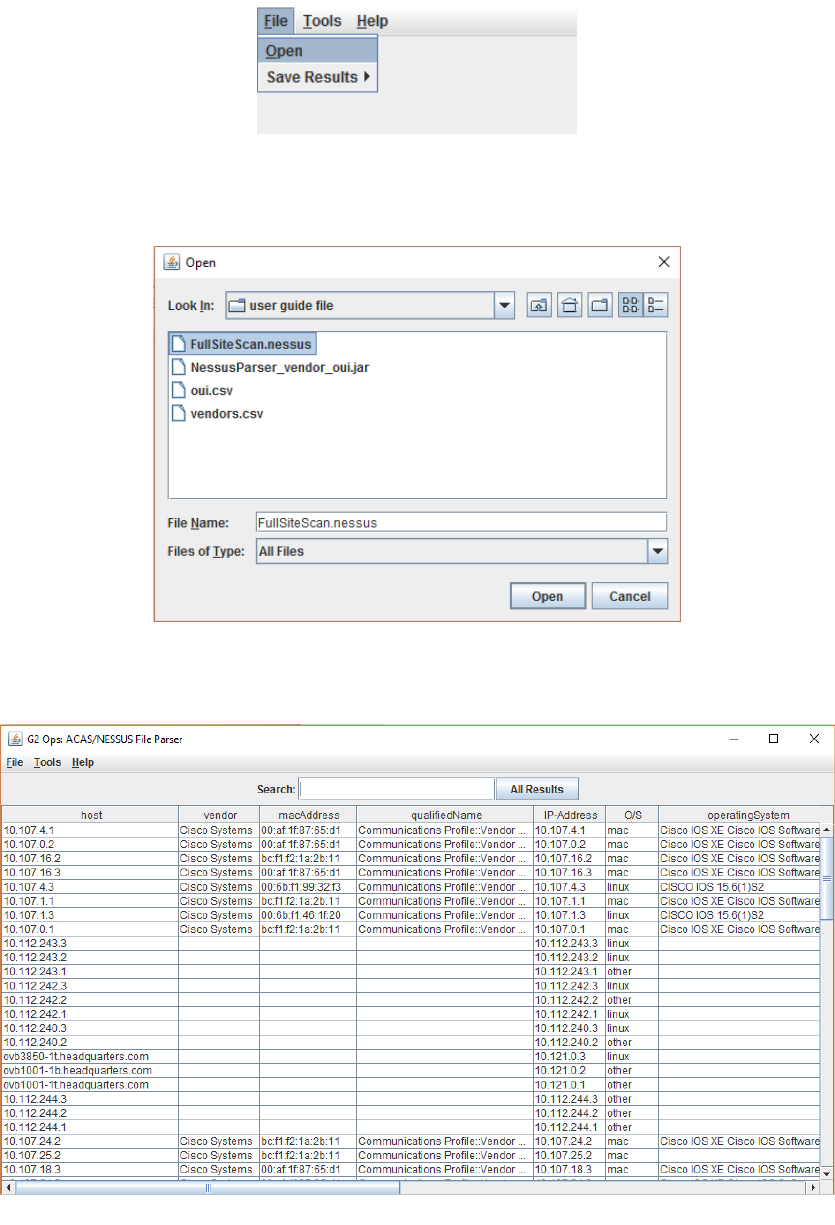 To open the Nessus files that you need parsed, click the File dropdown menu in the top left corner and