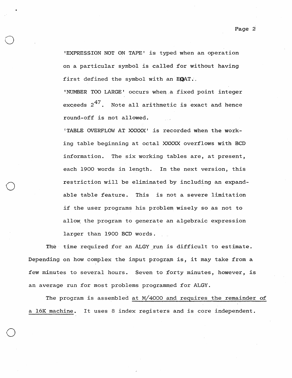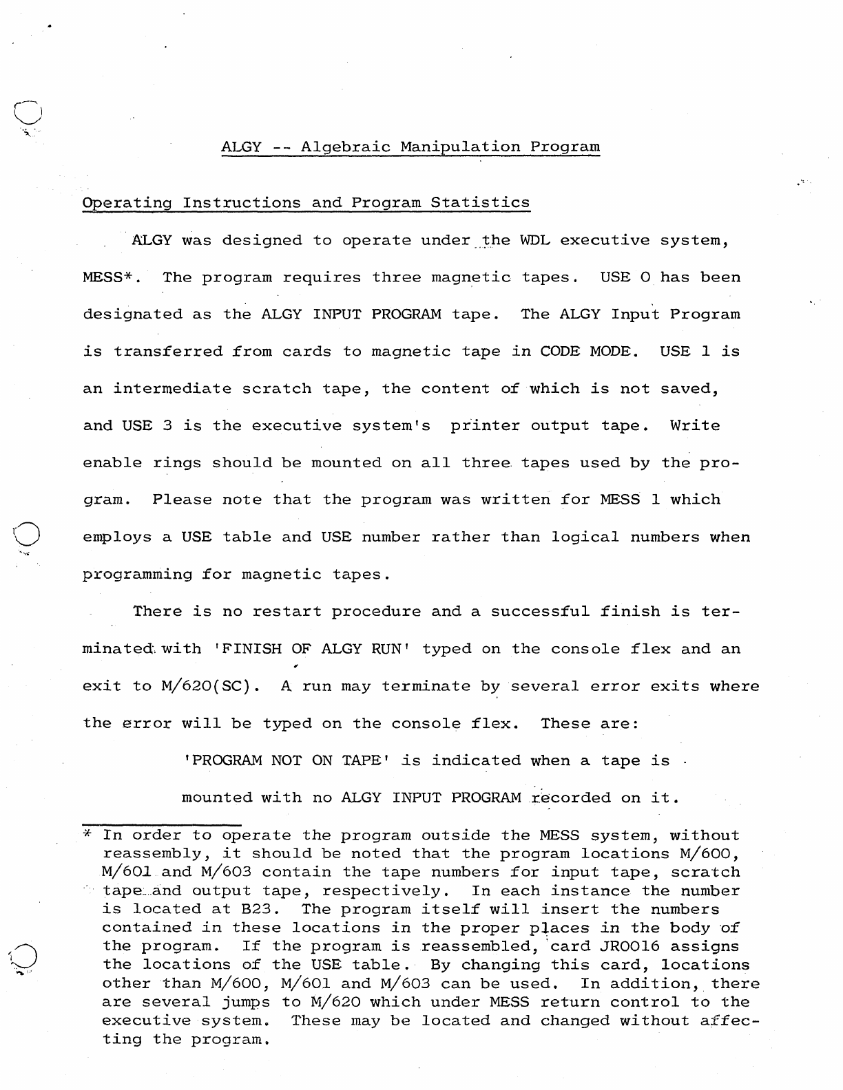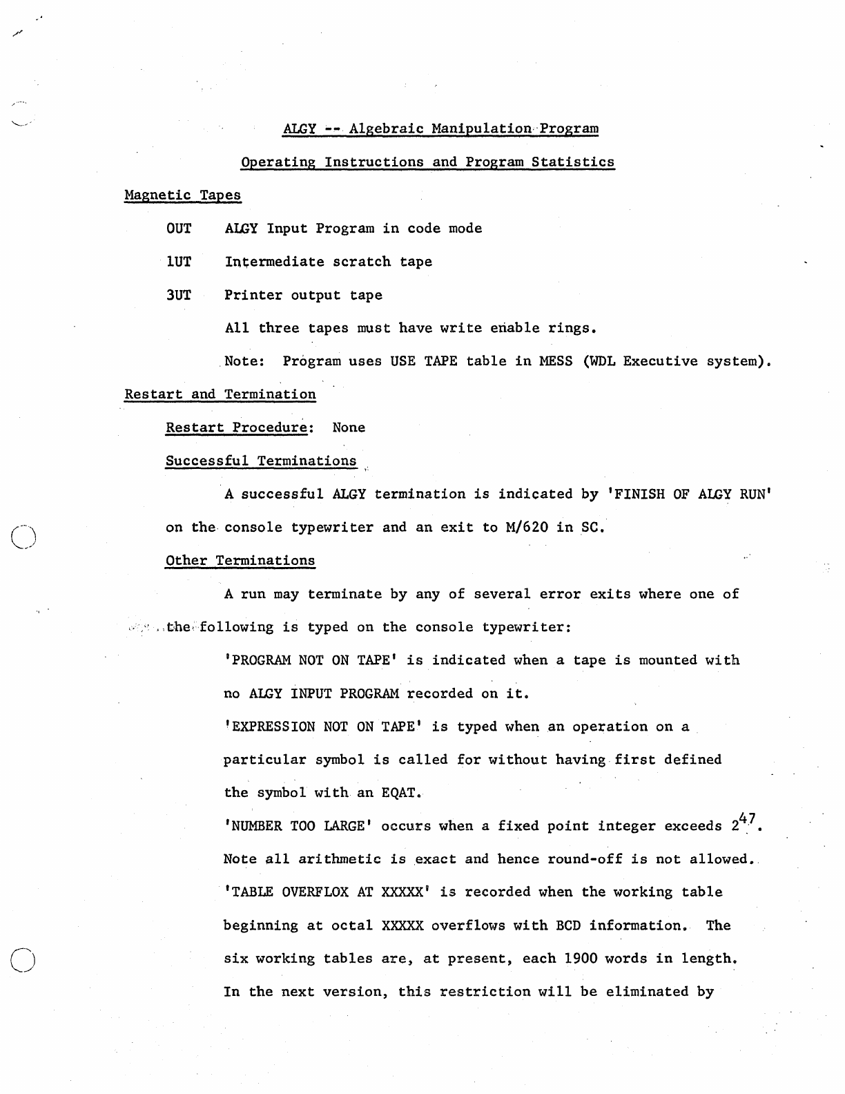 User Manual: Pdf ALGY_Algebraic_Manipulation_Program_Jun1961