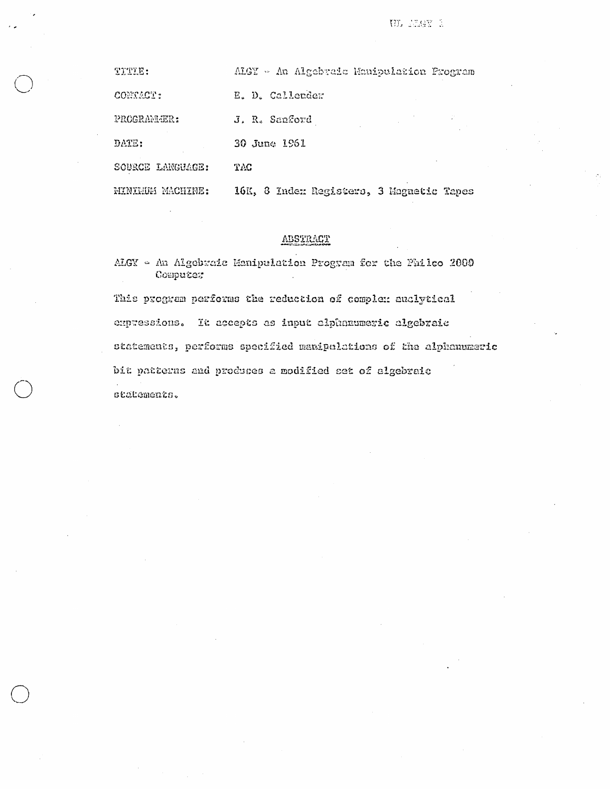ALGY_Algebraic_Manipulation_Program_Jun1961 ALGY Algebraic Manipulation Program Jun1961