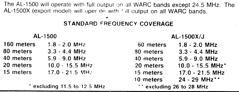 export model for Japan and covers 160 through 10 meters. The AL-1500