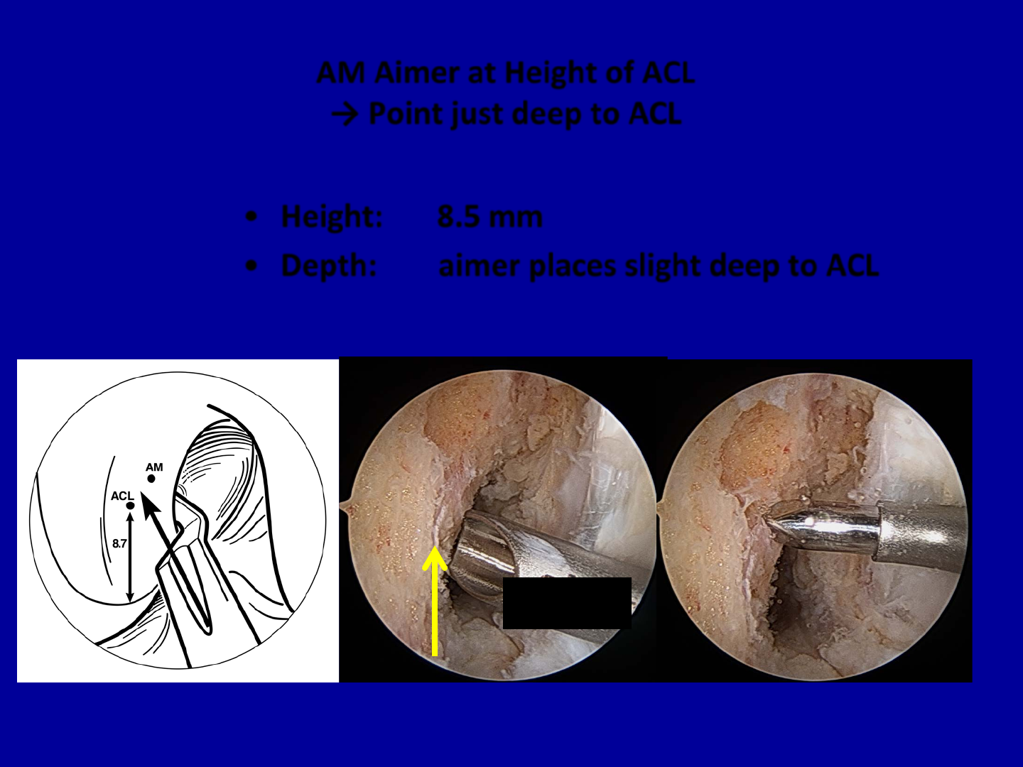 - AM Aimer at Height of ACL→ Point just deep to ACL