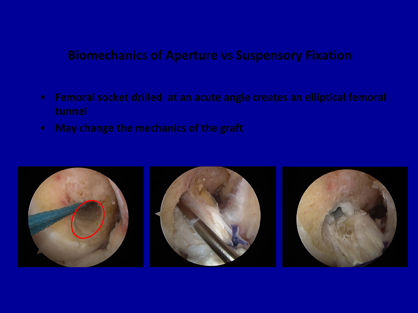 •Femoral socket drilled at an acute angle creates an elliptical femoral
