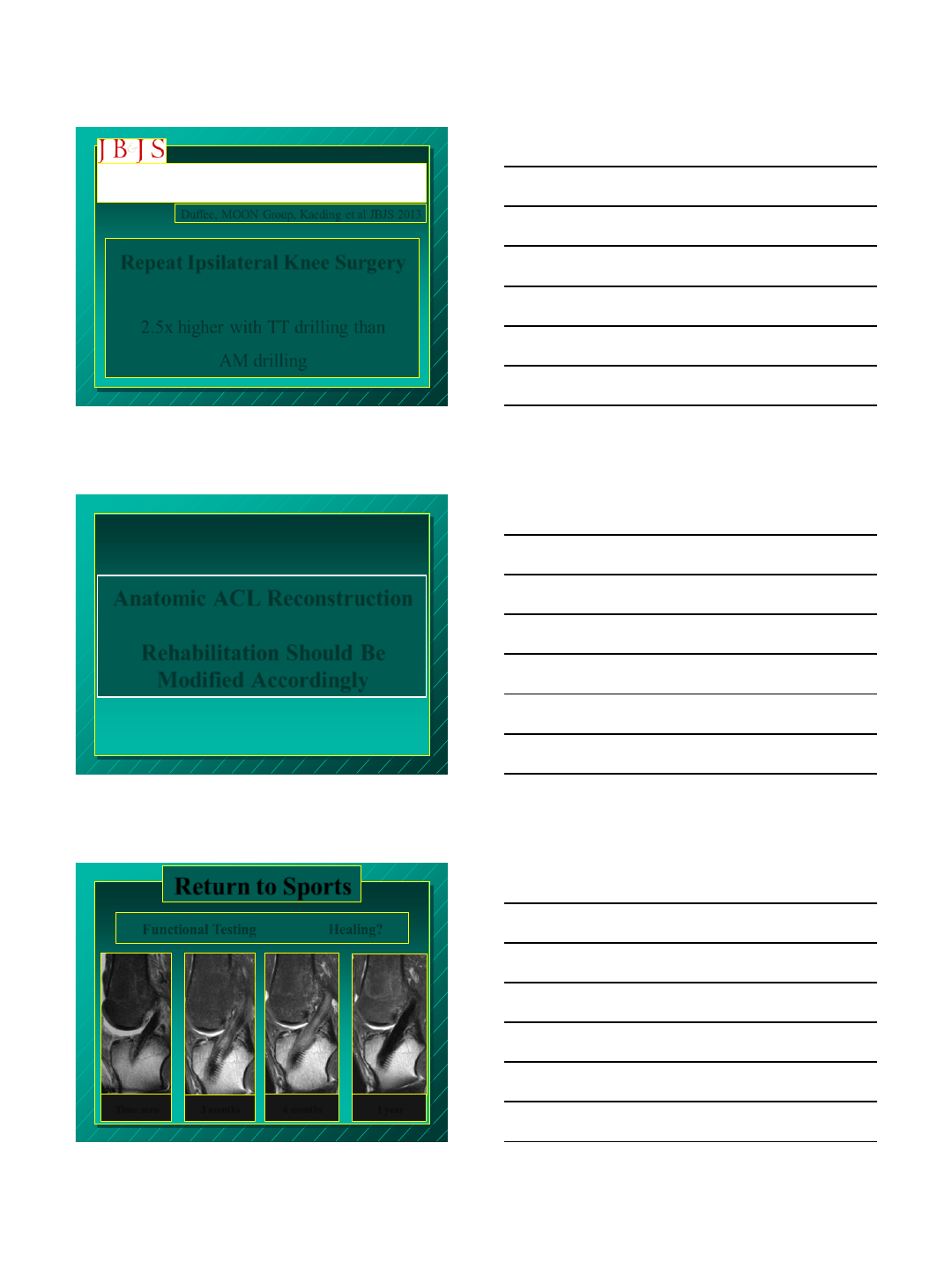 - Anatomic Transtibial DrillingTibial or Femoral Tunnels have to be compromised
