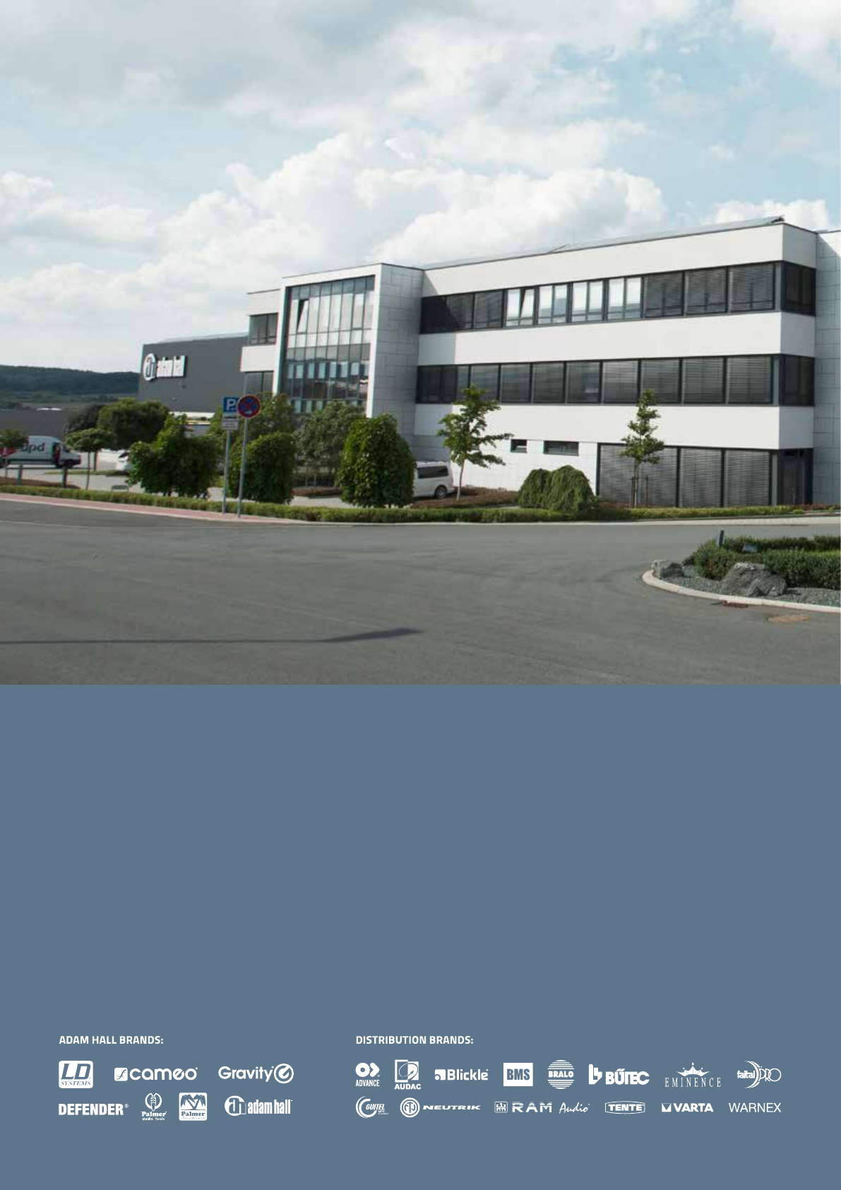 Cameo®, Gravity®, Defender®, Palmer® and Adam Hall®.