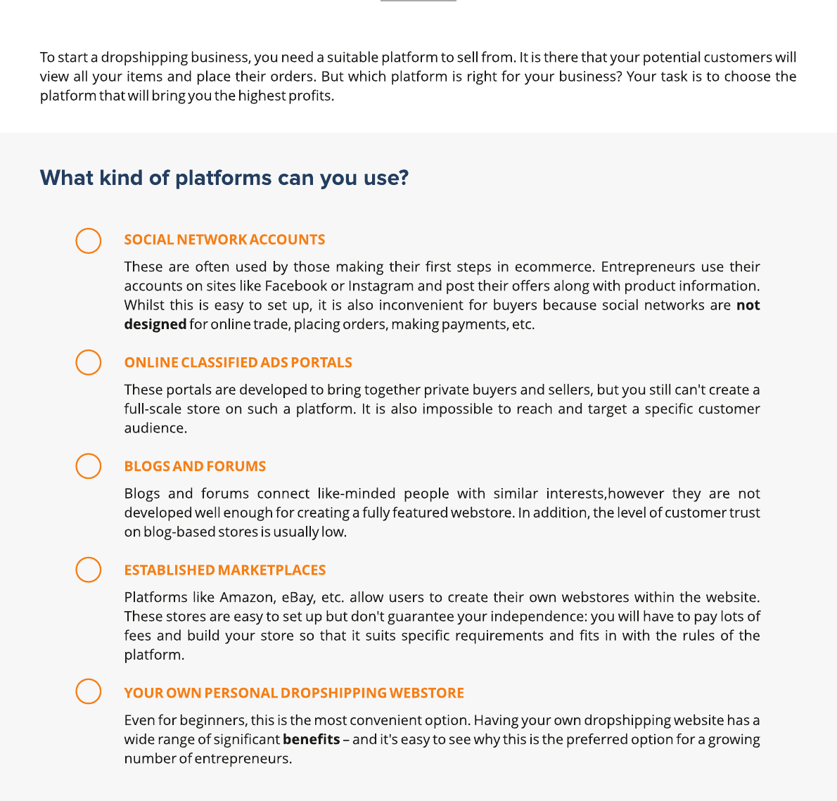 journey. For example, there are reselling models like drop shipping – to open a drop shipping store, you