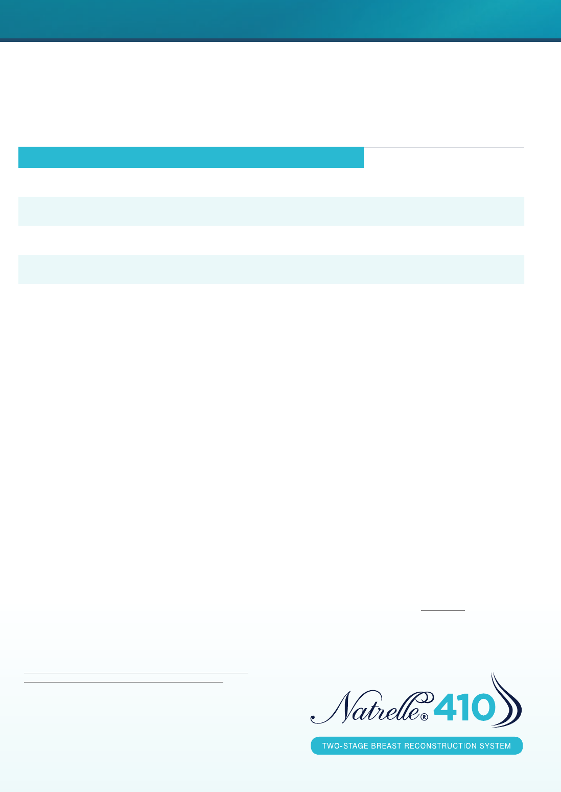 reconstructive breast surgery. Plast Reconstr Surg. 2005;116(3):768-779. 8. Natrelle® 410 Highly Cohesive Anatomically Shaped Silicone-Filled Breast Implants Directions for Use, 2013. 9. Data on le, Allergan, Inc.