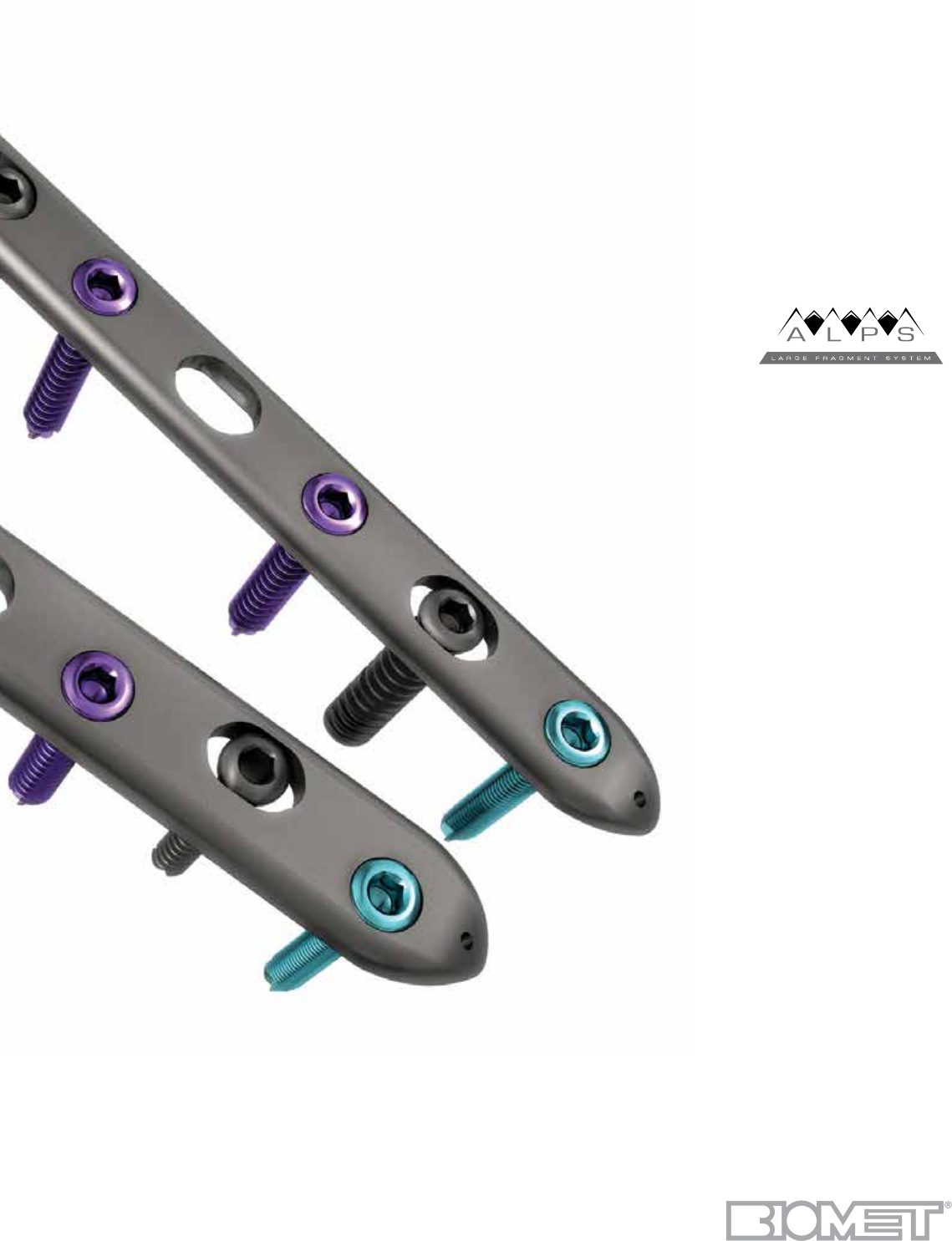 The Biomet Large Fragment System is a titanium plate and screw system that fuses locking screw technology with conventional plating techniques. The set was designed